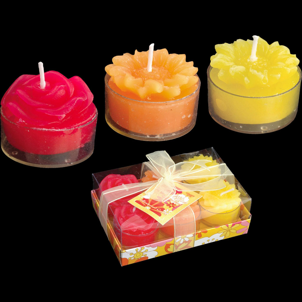 Набор состоит из шести свечей-картриджей в виде цветов. Упаковка - картонная коробка с ПВХ-крышкой и подарочной ленточкой. |