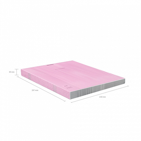 Тетрадь общая ученическая формата А4 (210x297 мм). Обложка выполнена из высококачественного износостойкого цветного матового пластика с фактурой «апельсиновая корка». В блоке 48 листов в клетку. Бумага офсетная плотностью 60 г/м2. Цвет линовки — синий. Скругленные уголки обложки и блока. Тип скрепления — скоба. Тетради упакованы в термоусадочную пленку по 6 штук. |