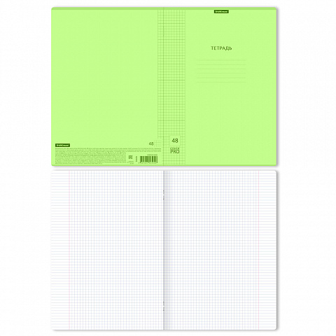 Тетрадь общая ученическая формата А4 (210x297 мм). Обложка выполнена из высококачественного износостойкого цветного матового пластика с фактурой «апельсиновая корка». В блоке 48 листов в клетку. Бумага офсетная плотностью 60 г/м2. Цвет линовки — синий… |