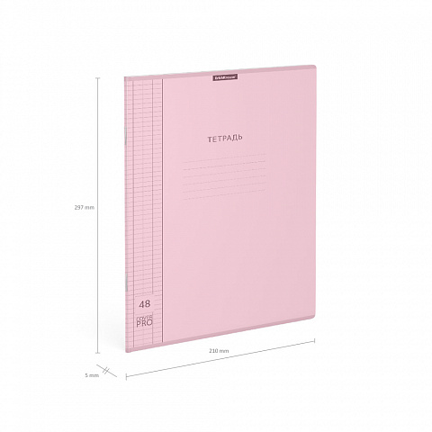 Тетрадь общая ученическая с пластиковой обложкой на скобе ErichKrause Классика CoverPrо Pastel fizzy, розовый, А4, 48 листов, клетка