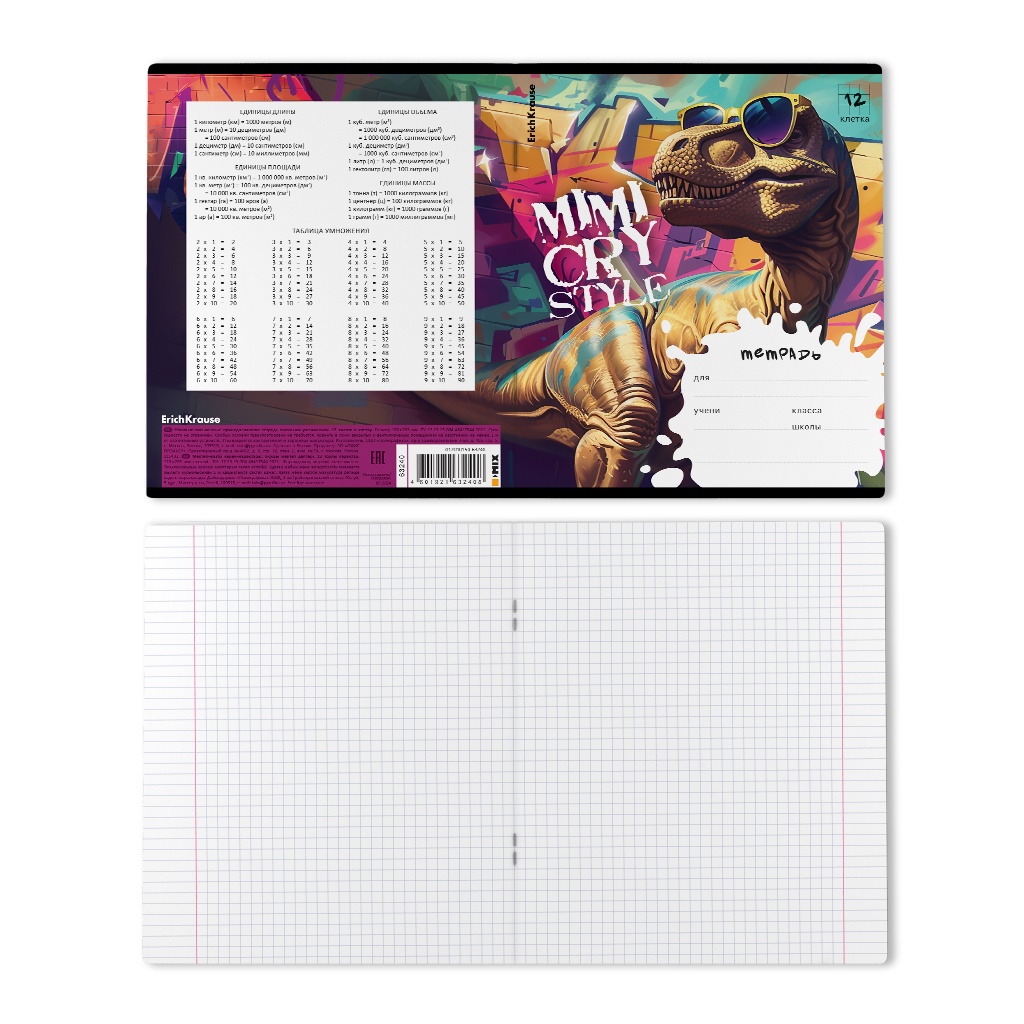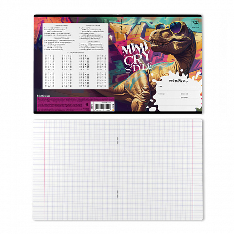 Тетрадь школьная ученическая ErichKrause Dino Art, 12 листов, клетка (в плёнке по 10 шт.)_MIX-PACK |