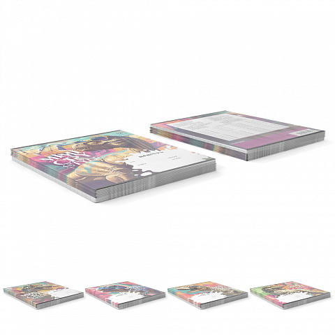 Тетрадь школьная ученическая формата А5+ (170х203 мм). Обложка из высококачественного мелованного картона плотностью 170 г/м2. В блоке 12 листов в клетку с полями. Бумага офсетная плотностью 60 г/м2. Цвет линовки - синий. Скругленные уголки обложки и блока. Тип скрепления - скоба. Тетради разных цветов упакованы в термоусадочную пленку по 10 штук. |