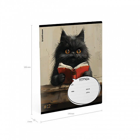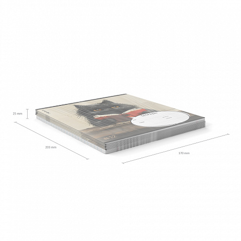 Тетрадь школьная ученическая формата А5+ (170х203 мм). Обложка из высококачественного мелованного картона плотностью 170 г/м2. В блоке 12 листов в клетку с полями. Бумага офсетная плотностью 60 г/м2. Цвет линовки - синий. Скругленные уголки обложки и блока… |