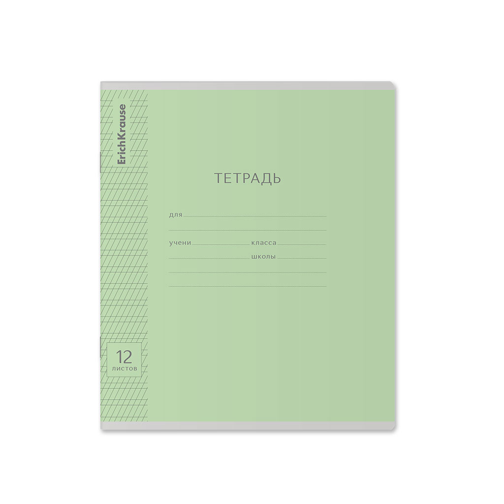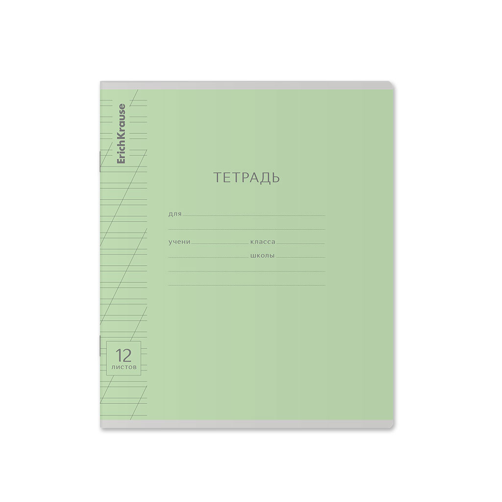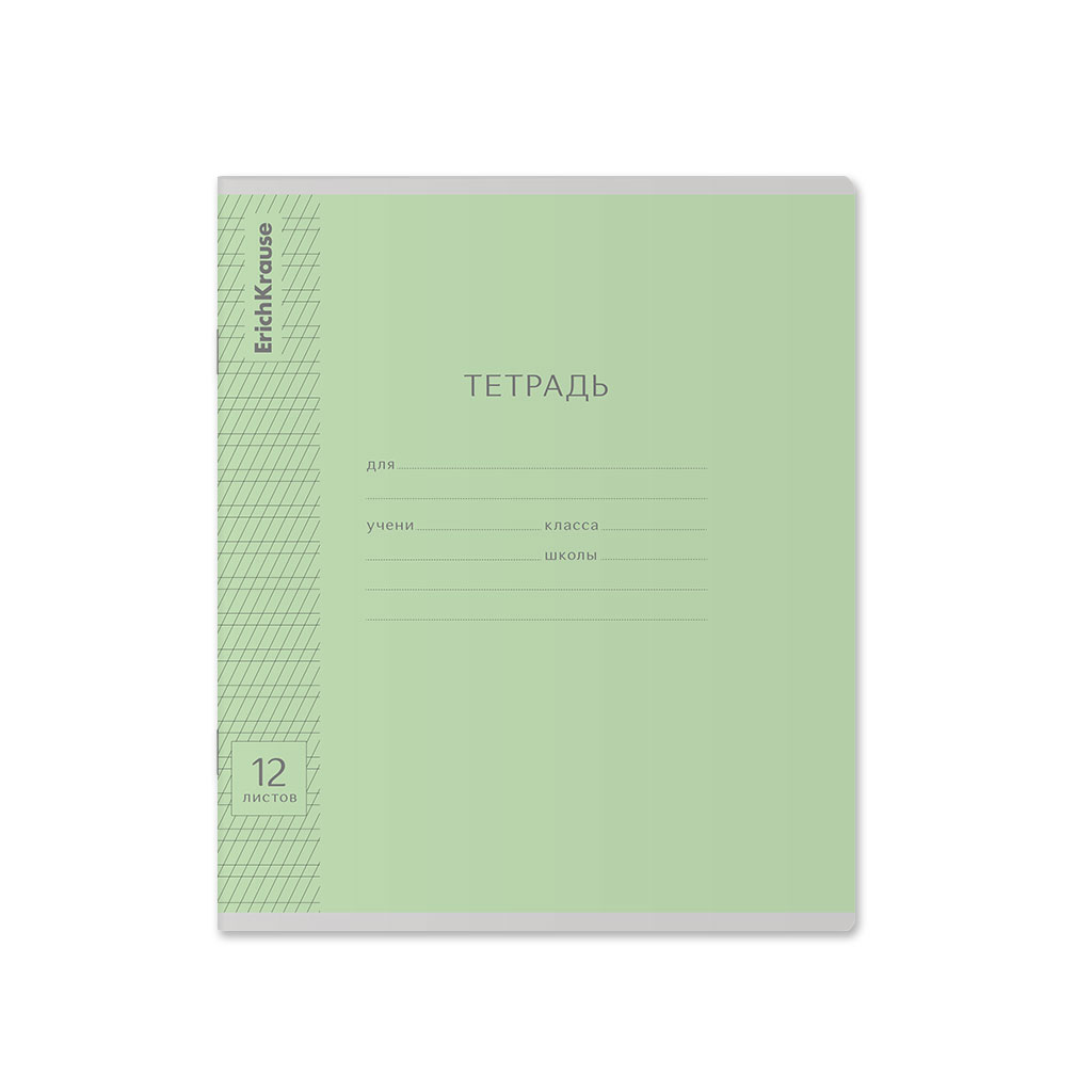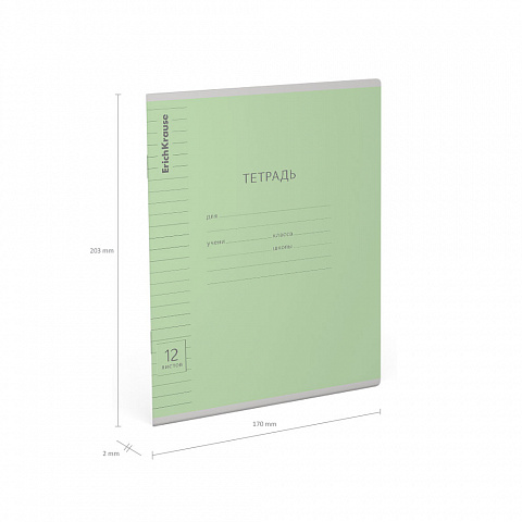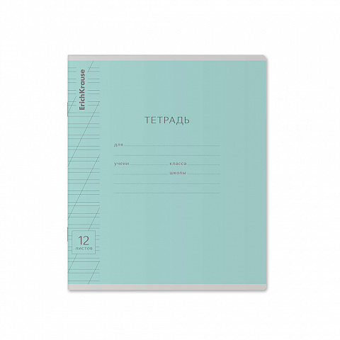 Тетрадь школьная ученическая ErichKrause Классика Visio зеленая, 12 листов, косая линейка (в плёнке по 10 шт.)