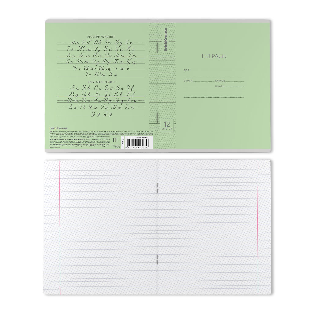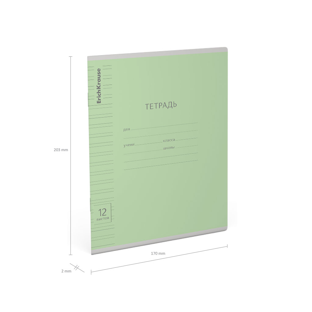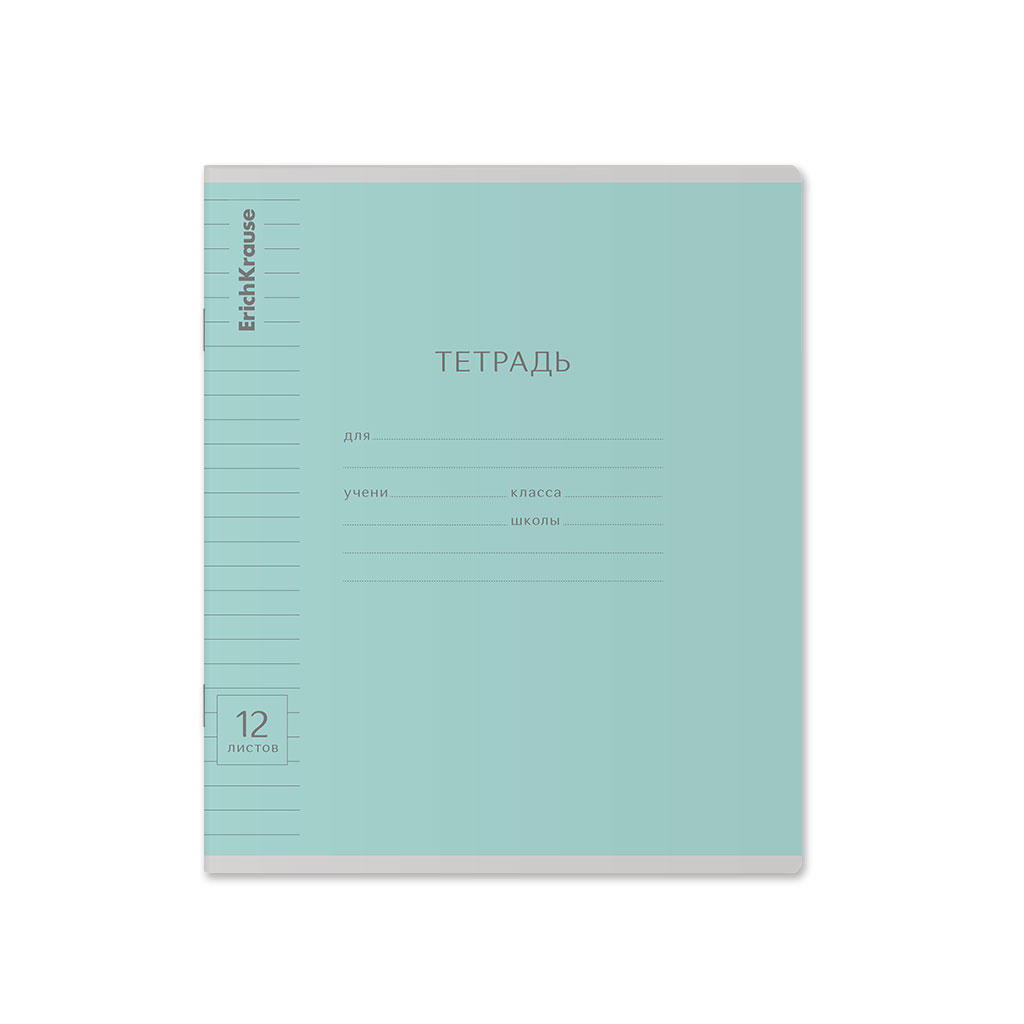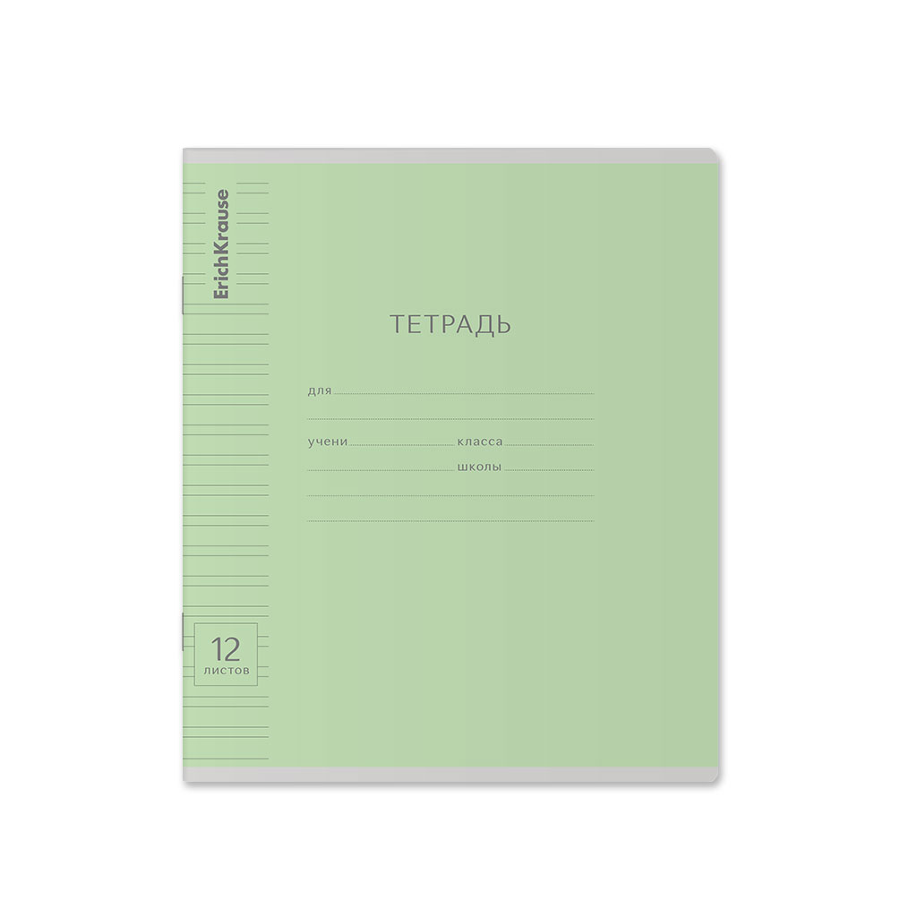 Тетрадь школьная ученическая ErichKrause Классика Visio зеленая, 12 листов, косая линейка (в плёнке по 10 шт.)