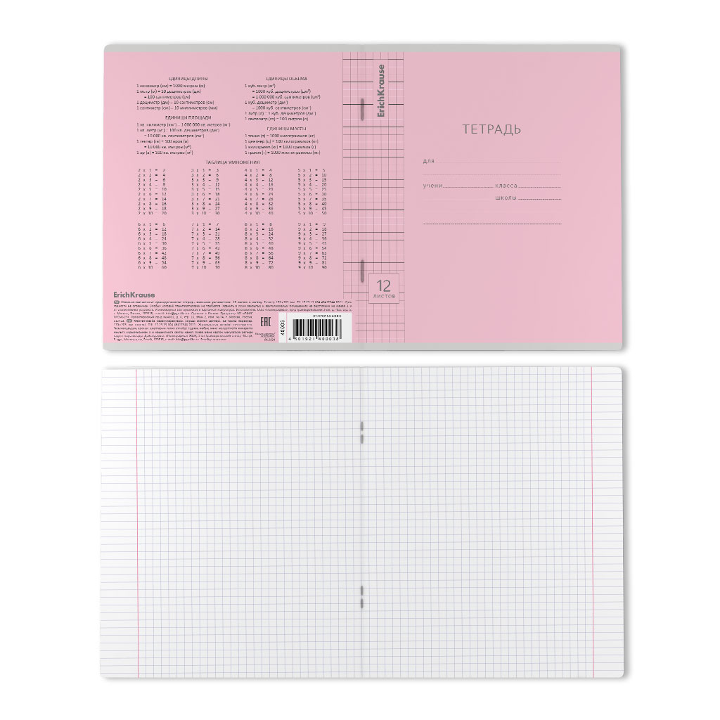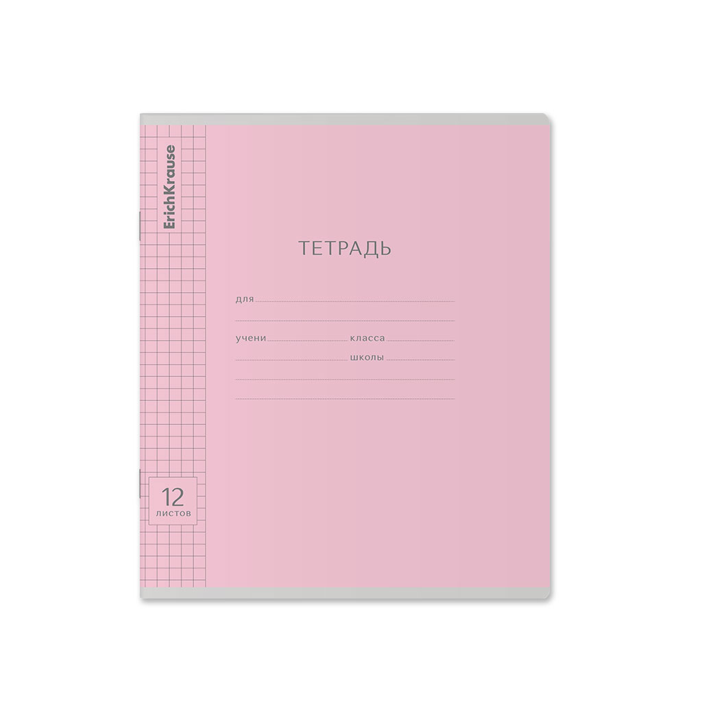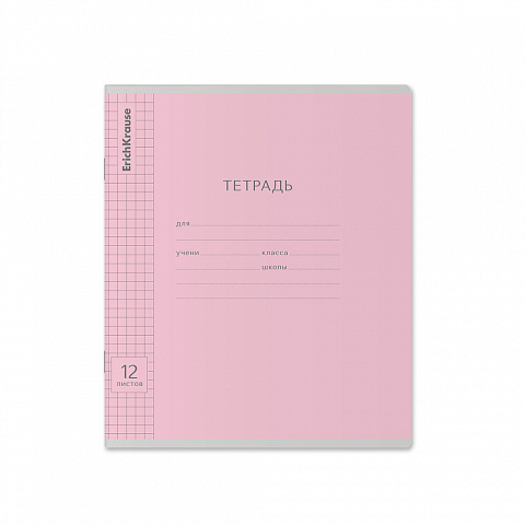 Тетрадь школьная ученическая ErichKrause Классика Visio розовая, 12 листов, клетка (в плёнке по 10 шт.)