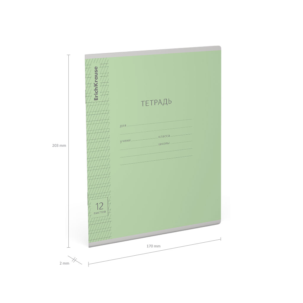 Тетрадь школьная ученическая ErichKrause Классика Visio зеленая, 12 листов, частая косая линейка (в плёнке по 10 шт.)