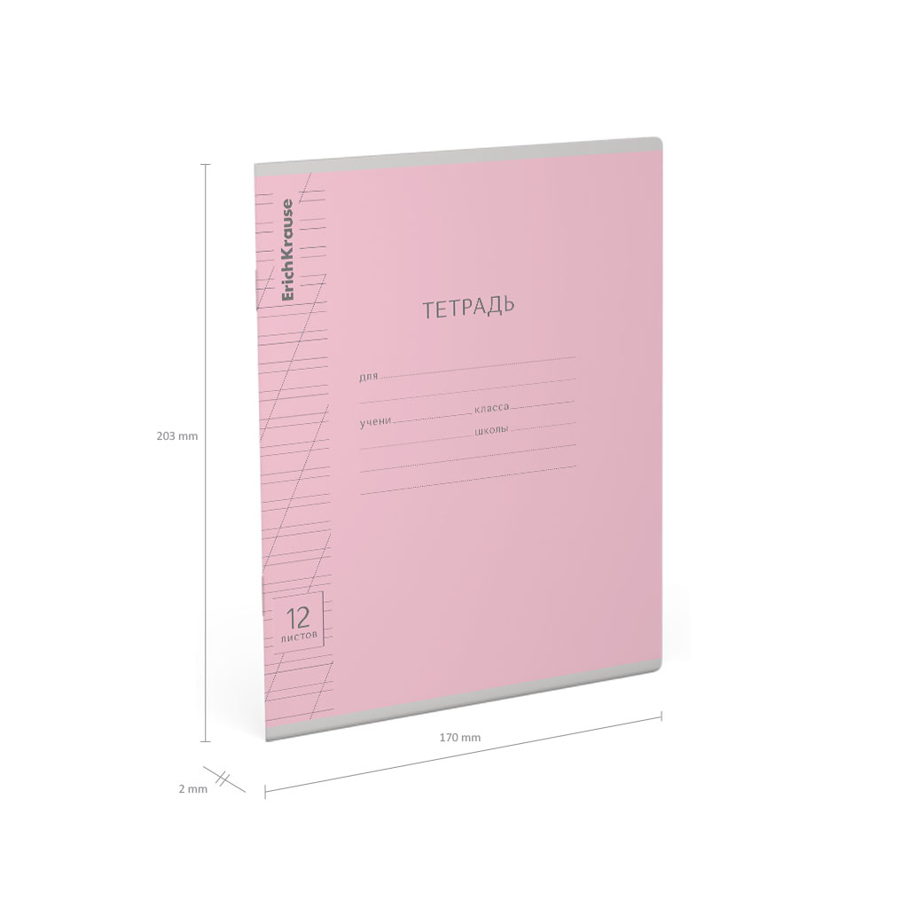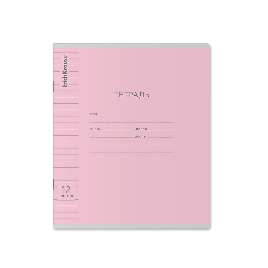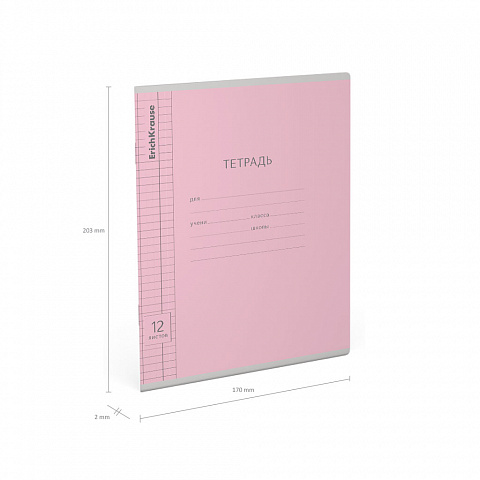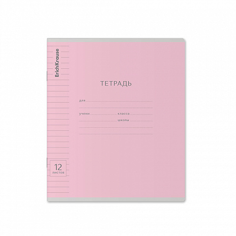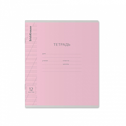Тетрадь школьная ученическая ErichKrause Классика Visio розовая, 12 листов, косая линейка (в плёнке по 10 шт.)