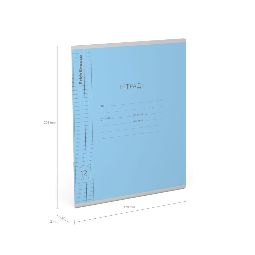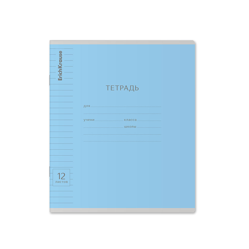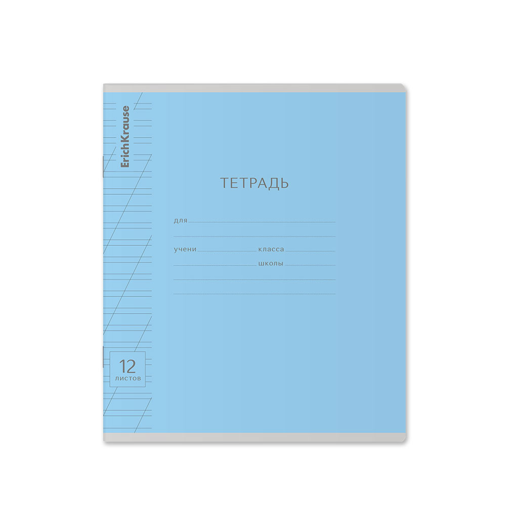 Тетрадь школьная ученическая ErichKrause Классика Visio голубая, 12 листов, косая линейка (в плёнке по 10 шт.)