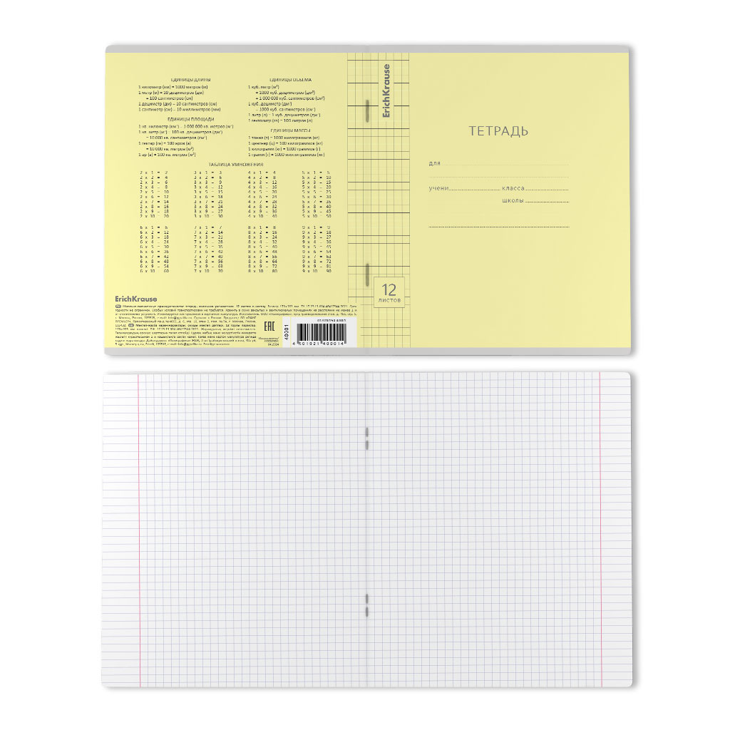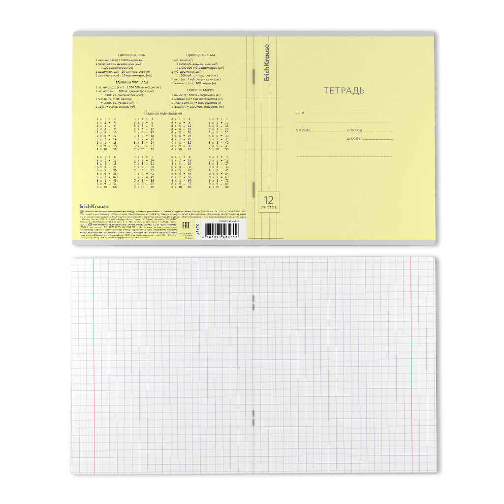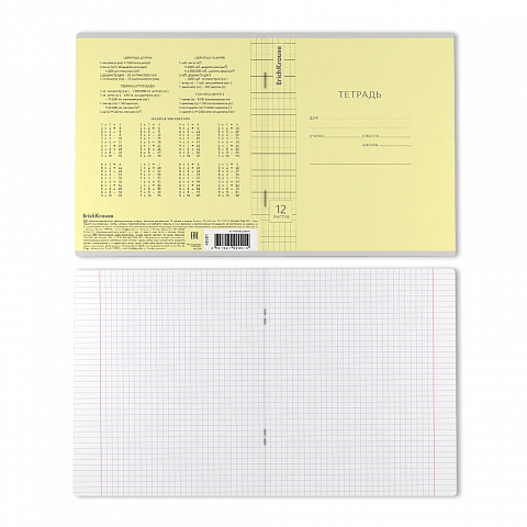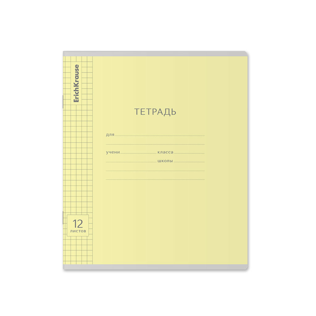 Тетрадь школьная ученическая ErichKrause Классика Visio желтая, 12 листов, клетка (в плёнке по 10 шт.)