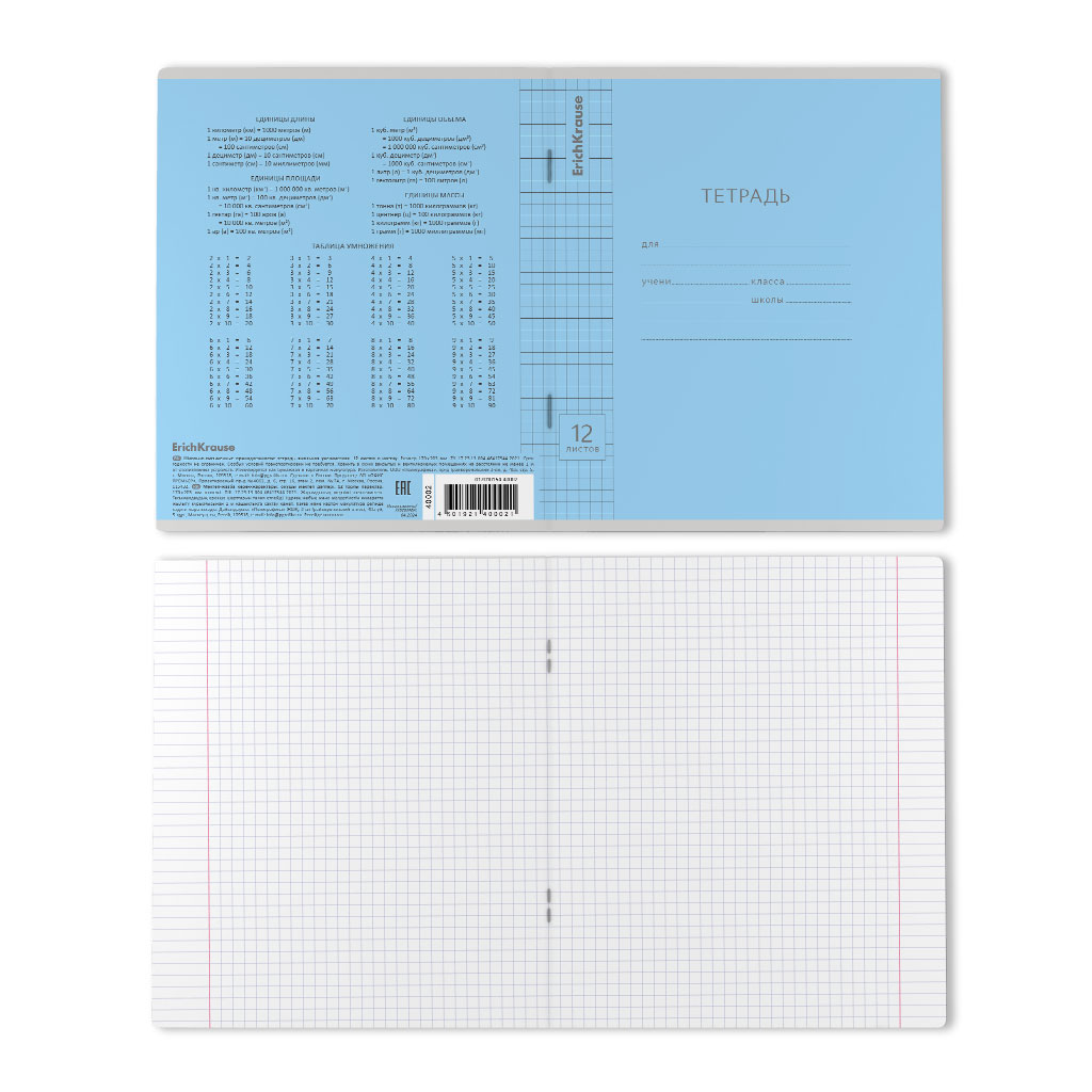 Тетрадь школьная ученическая формата А5+ (170х203 мм). Обложка из высококачественного мелованного картона плотностью 180 г/м2. В блоке 12 листов в крупную клетку с полями. Бумага офсетная плотностью 60 г/м2. Цвет линовки - синий. Скругленные уголки обложки и блока. Тип скрепления - скоба. Тетради одного цвета упакованы в термоусадочную пленку по 10 штук. Товар поставляется в нескольких вариантах цвета без возможности выбора. |