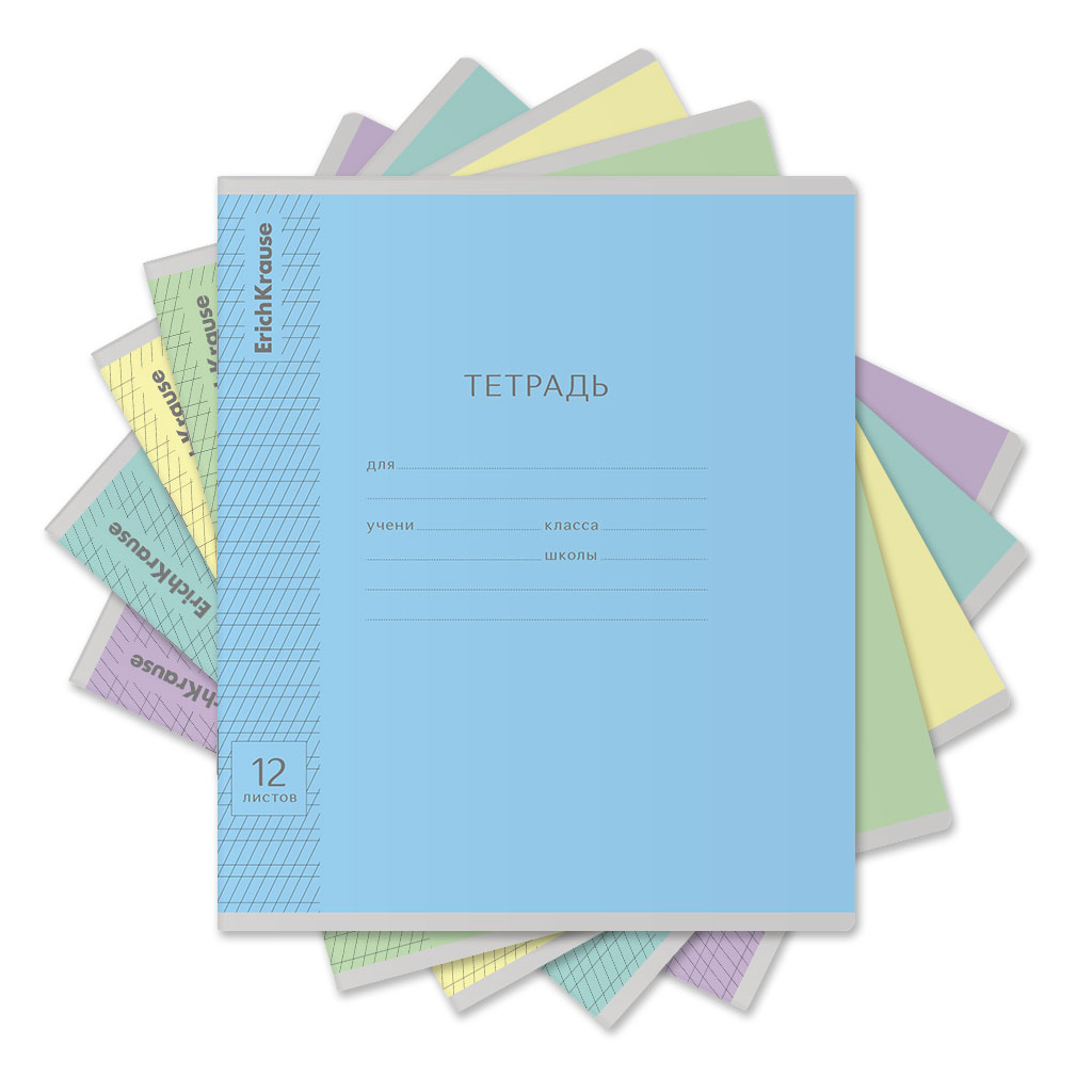 Тетрадь школьная ученическая ErichKrause Классика Visio ассорти, 12 листов, клетка (в плёнке по 10 шт.)