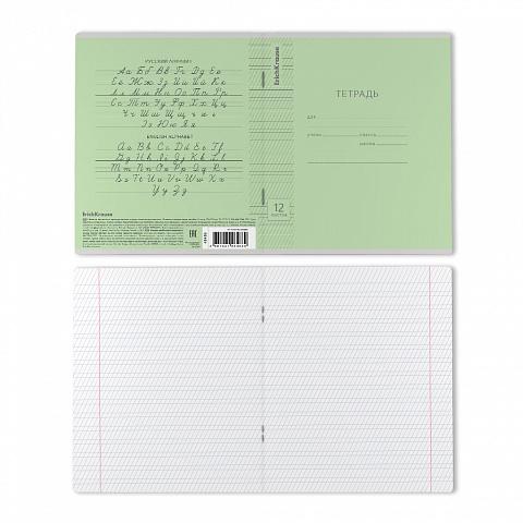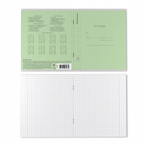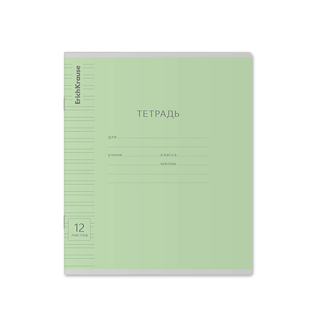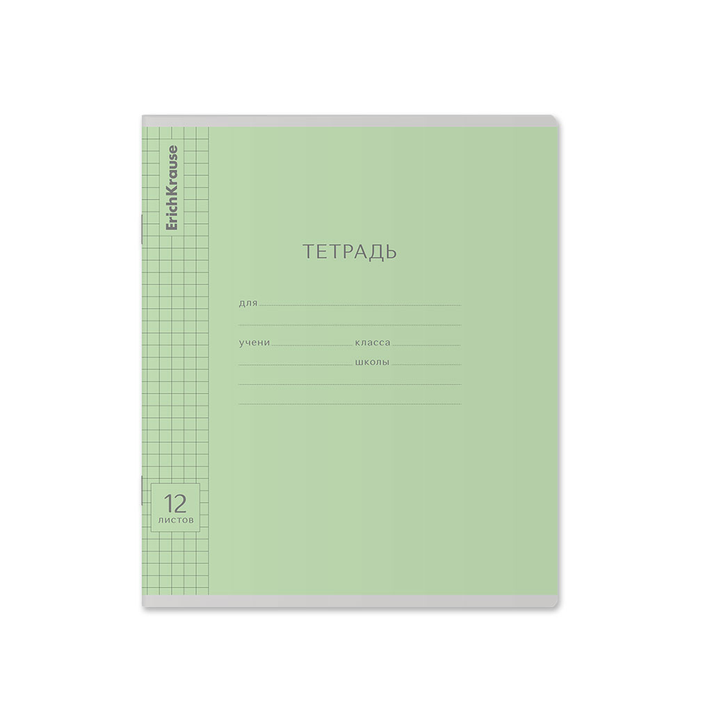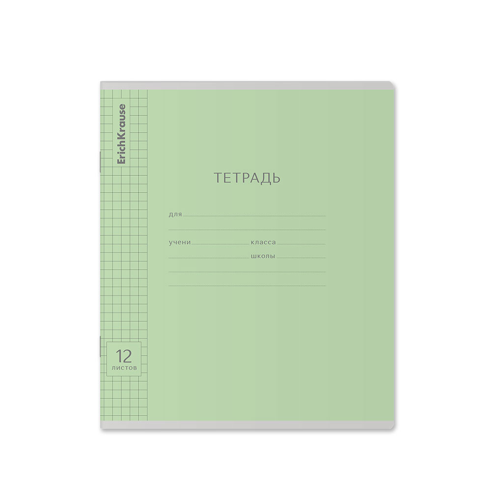 Тетрадь школьная ученическая ErichKrause Классика Visio зеленая, 12 листов, клетка (в плёнке по 10 шт.)