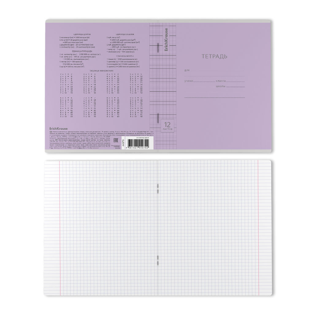 Тетрадь школьная ученическая ErichKrause Классика Visio фиолетовая, 12 листов, клетка (в плёнке по 10 шт.)