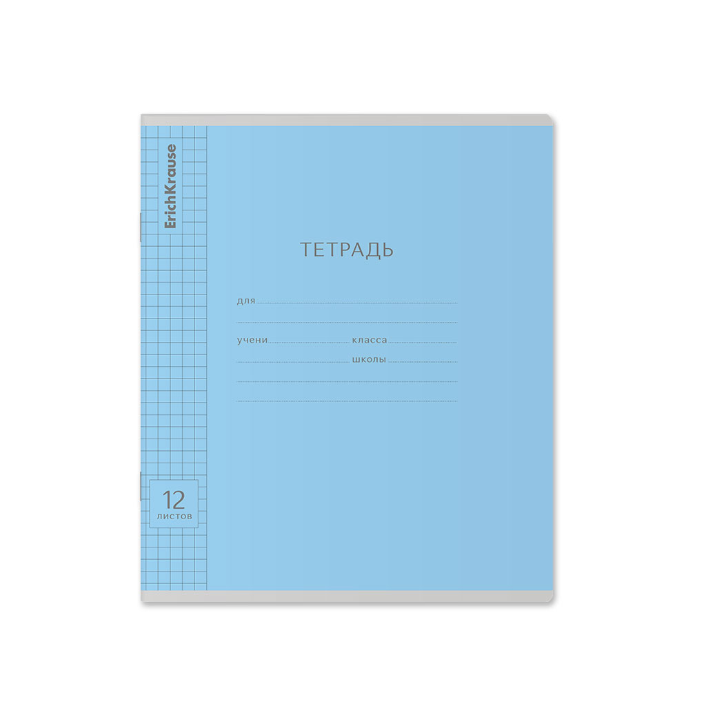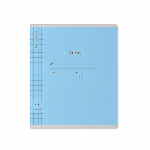 Тетрадь школьная ученическая ErichKrause Классика Visio голубая, 12 листов, клетка (в плёнке по 10 шт.)