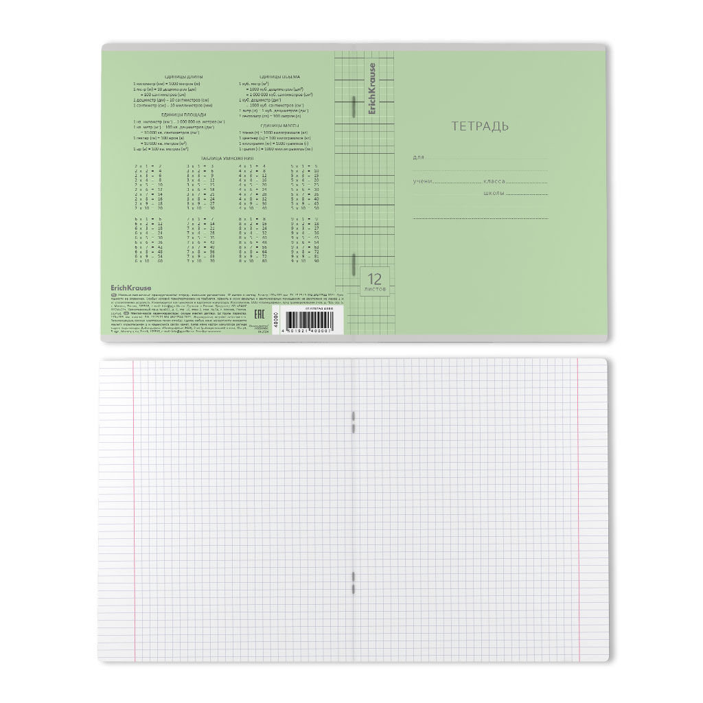 Тетрадь школьная ученическая ErichKrause Классика Visio зеленая, 12 листов, крупная клетка (в плёнке по 10 шт.)
