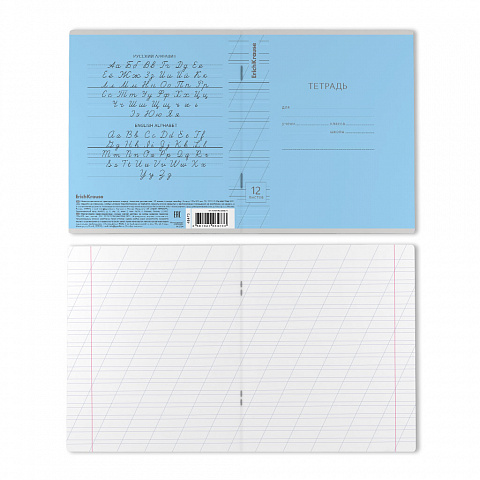 Тетрадь школьная ученическая формата А5+ (170х203 мм). Обложка из высококачественного мелованного картона плотностью 180 г/м2. В блоке 12 листов в косую линейку с полями. Бумага офсетная плотностью 60 г/м2. Цвет линовки - синий. Скругленные уголки обложки и… |