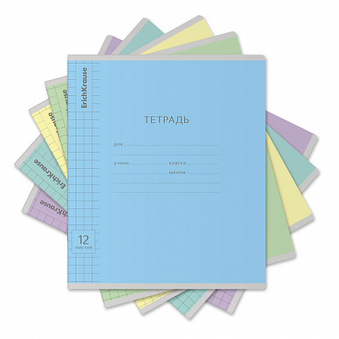 Тетрадь школьная ученическая ErichKrause Классика Visio ассорти, 12 листов, клетка (в плёнке по 10 шт.) |