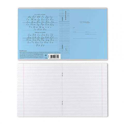 Тетрадь школьная ученическая формата А5+ (170х203 мм). Обложка из высококачественного мелованного картона плотностью 180 г/м2. В блоке 12 листов в клетку с полями. Бумага офсетная плотностью 60 г/м2. Цвет линовки - синий. Скругленные уголки обложки и блока… |