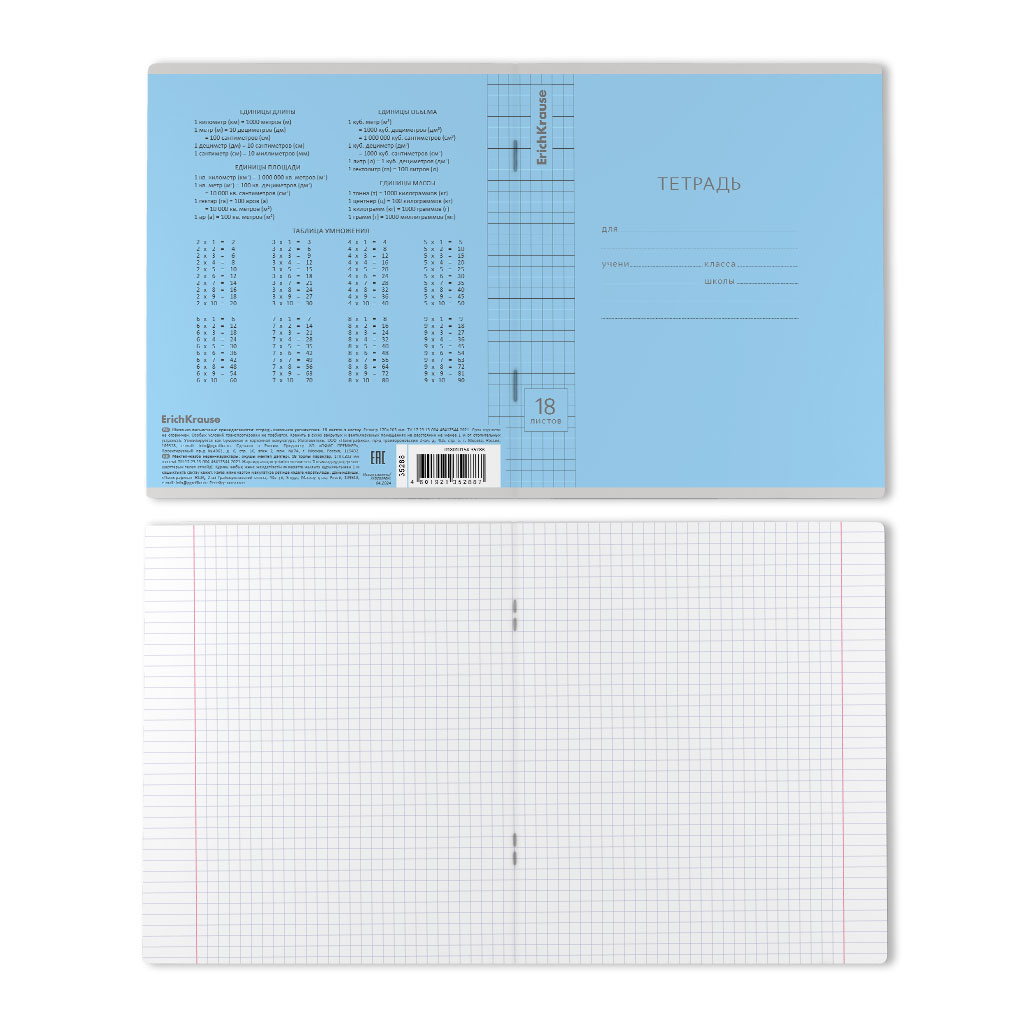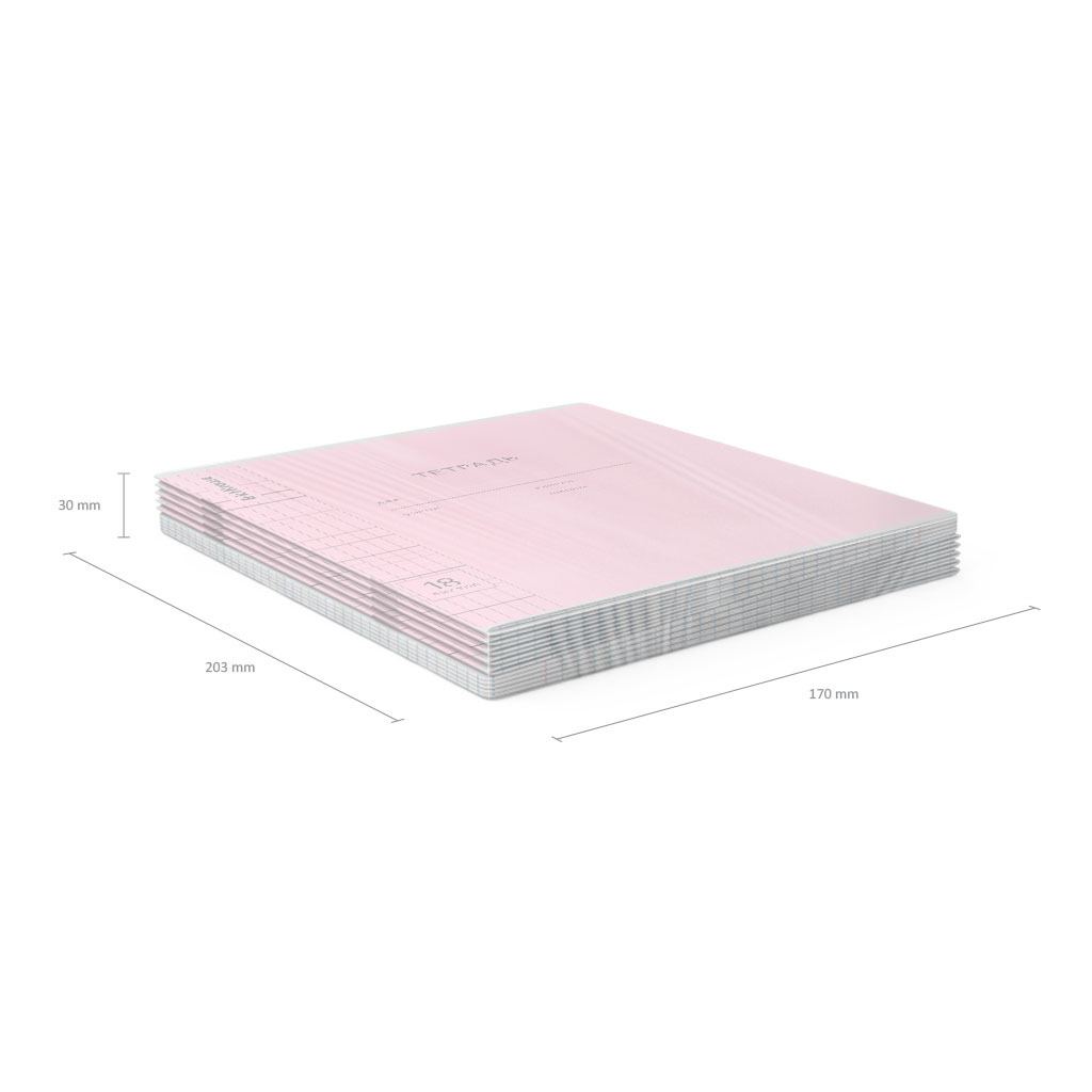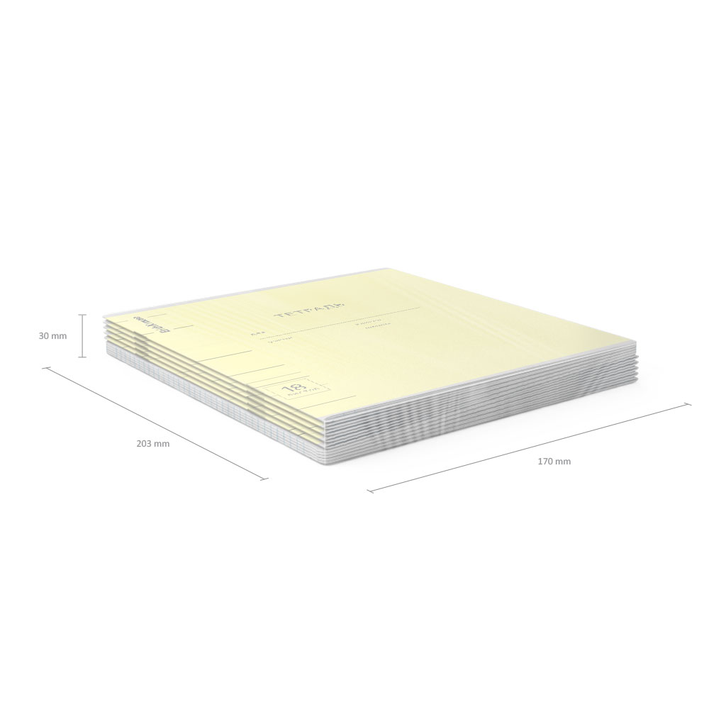 Тетрадь школьная ученическая формата А5+ (170х203 мм). Обложка из высококачественного мелованного картона плотностью 180 г/м2. В блоке 18 листов в клетку с полями. Бумага офсетная плотностью 60 г/м2. Цвет линовки - синий. Скругленные уголки обложки и блока. Тип скрепления - скоба. Тетради упакованы в термоусадочную пленку по 10 штук. |