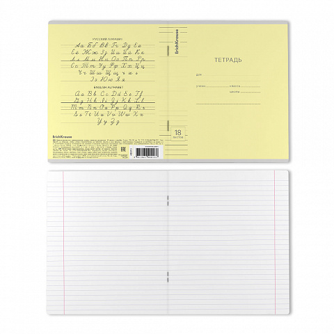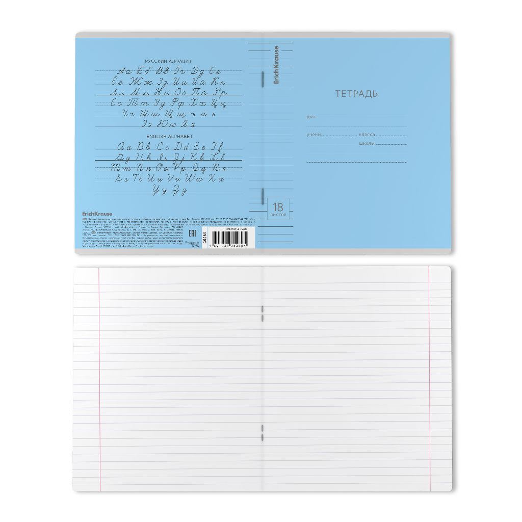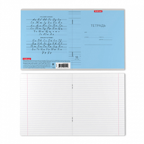 Тетрадь школьная ученическая формата А5+ (170х203 мм). Обложка из высококачественного мелованного картона плотностью 180 г/м2. В блоке 18 листов в линейку с полями. Бумага офсетная плотностью 60 г/м2. Цвет линовки - синий. Скругленные уголки обложки и блока. Тип скрепления - скоба. Тетради упакованы в термоусадочную пленку по 10 штук. |