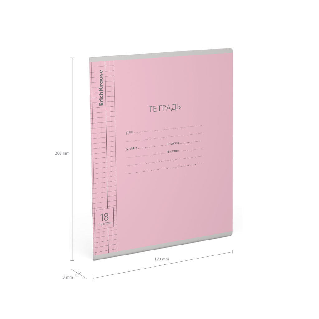 Тетрадь школьная ученическая ErichKrause Классика Visio розовая, 18 листов, клетка (в плёнке по 10 шт.) |