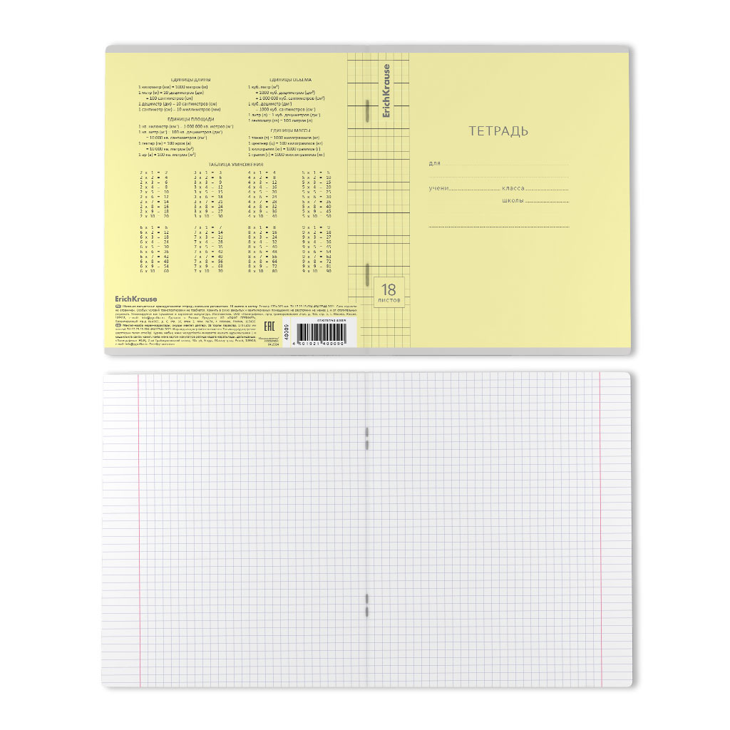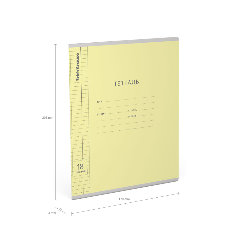 Тетрадь школьная ученическая ErichKrause Классика Visio желтая, 18 листов, клетка (в плёнке по 10 шт.) |
