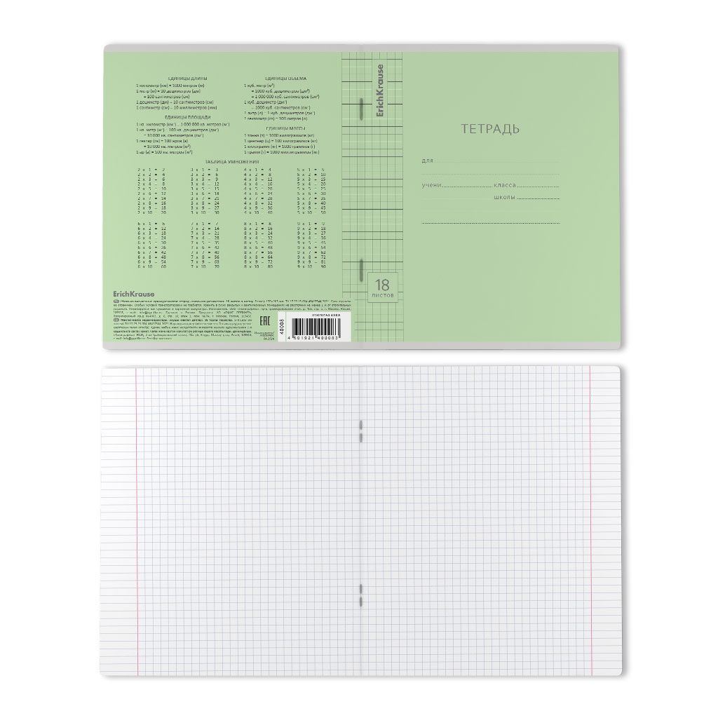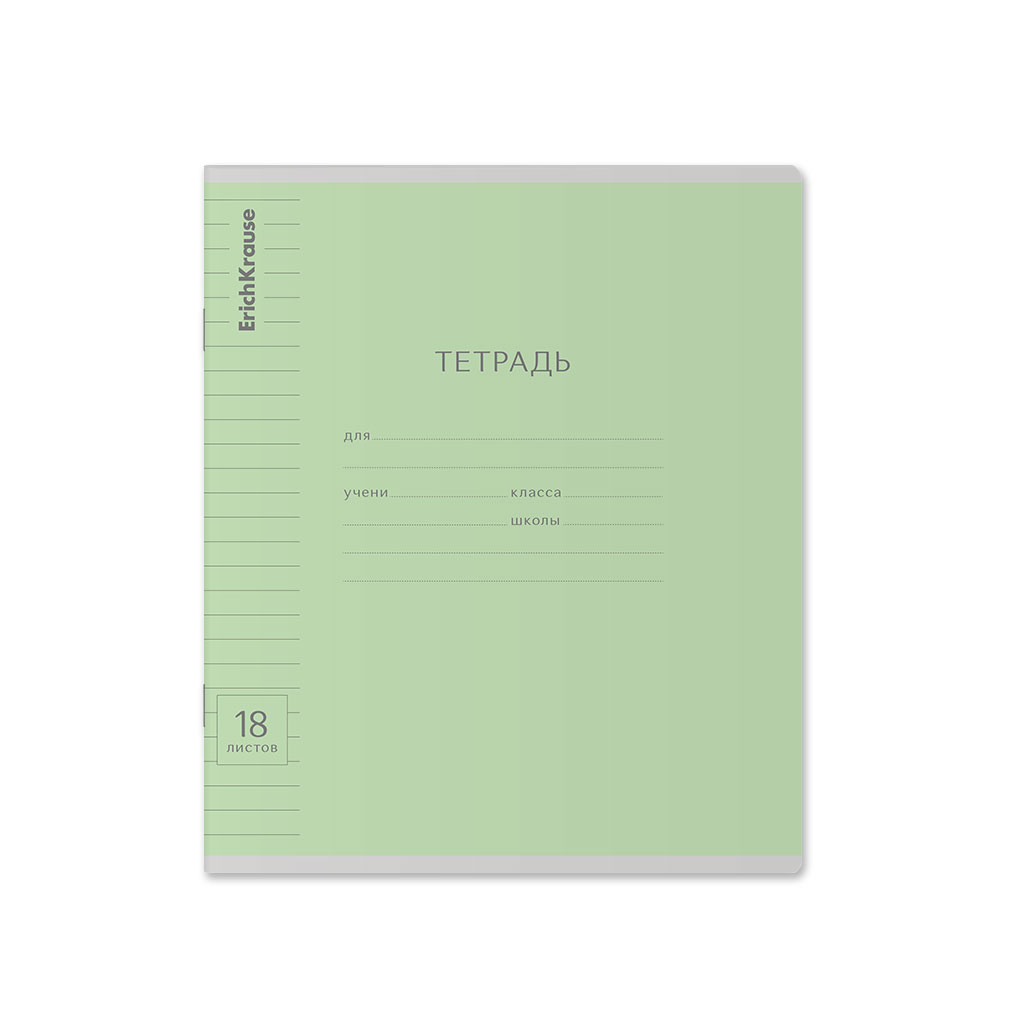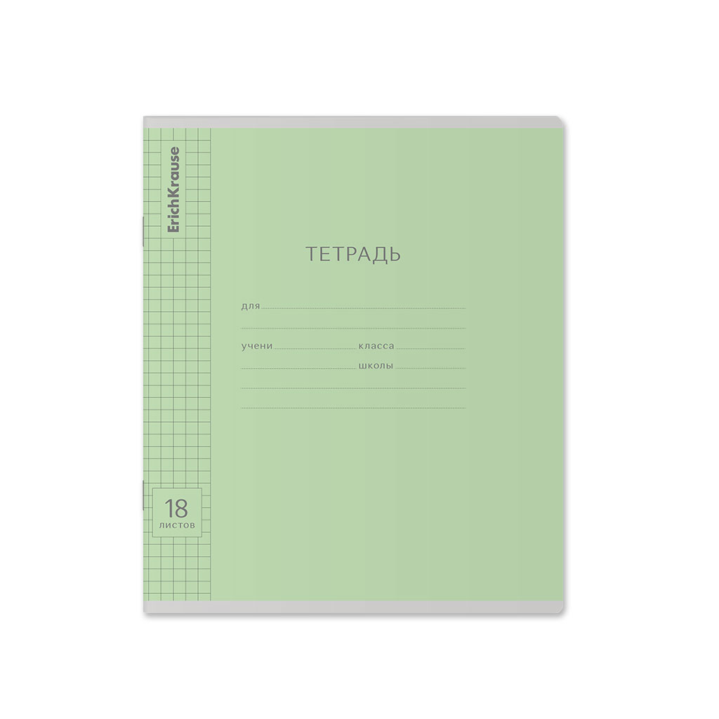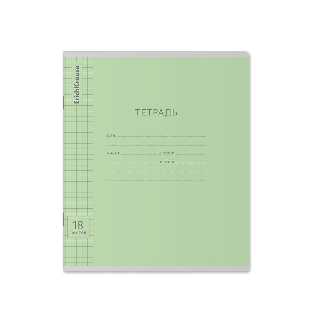 Тетрадь школьная ученическая ErichKrause Классика Visio зеленая, 18 листов, клетка (в плёнке по 10 шт.) |