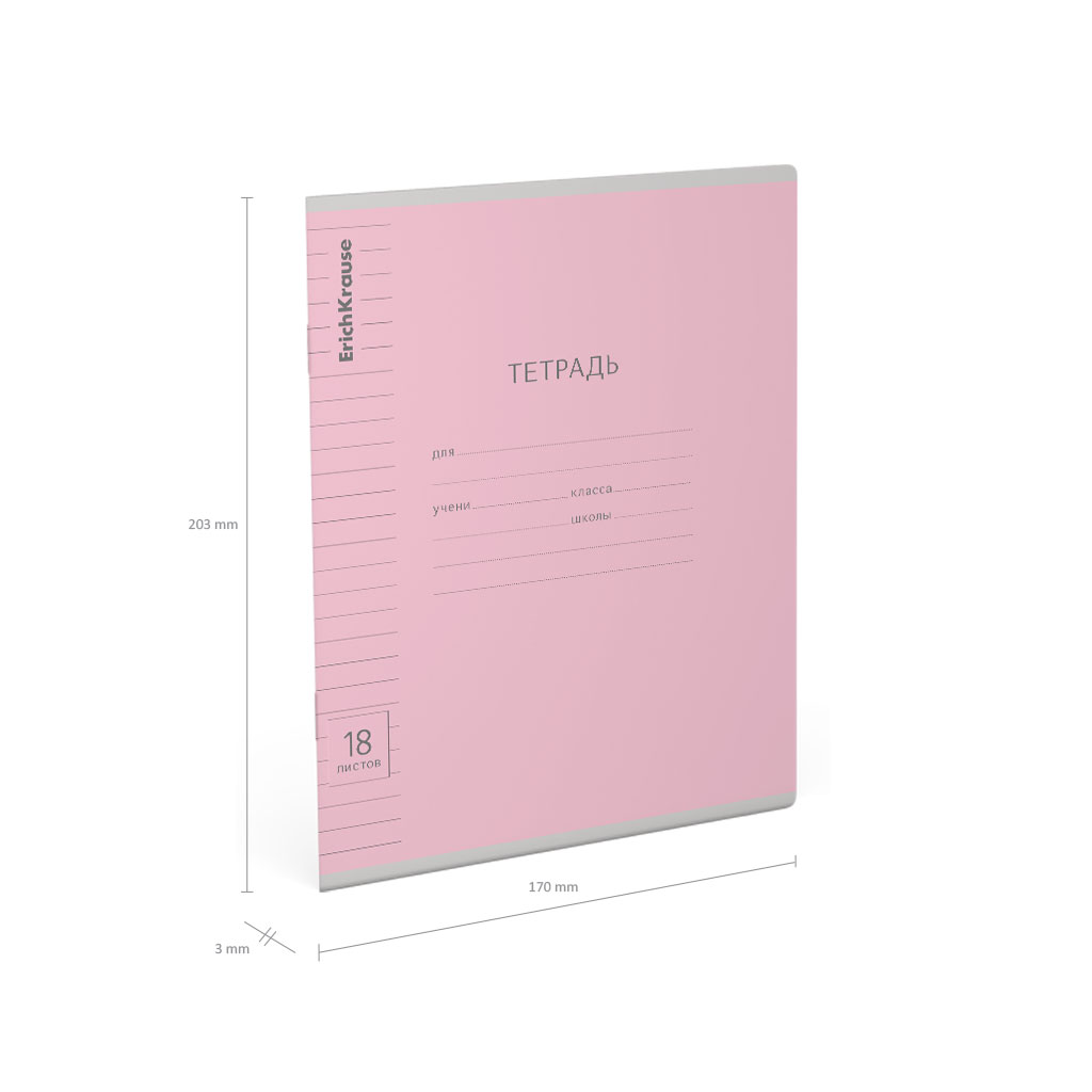 Тетрадь школьная ученическая ErichKrause Классика Visio розовая, 18 листов, линейка (в плёнке по 10 шт.)
