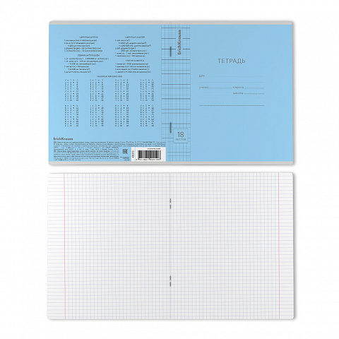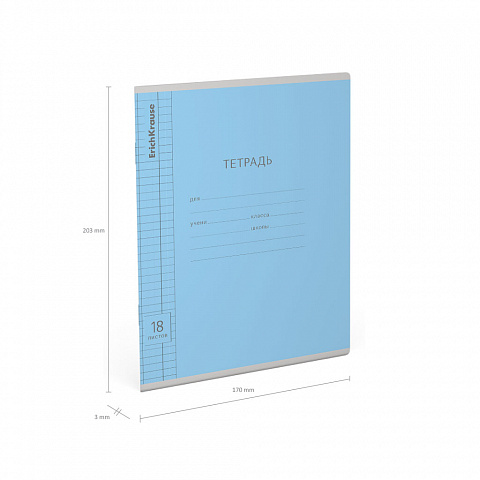 Тетрадь школьная ученическая ErichKrause Классика Visio голубая, 18 листов, клетка (в плёнке по 10 шт.) |