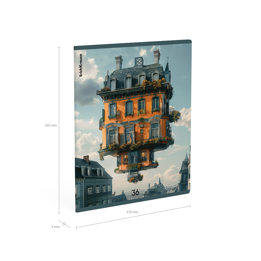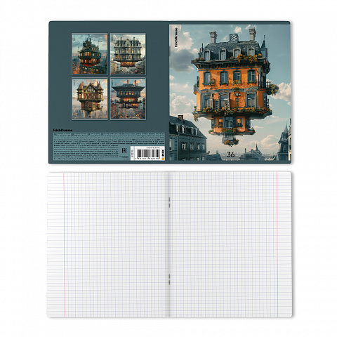 Тетрадь общая ученическая ErichKrause Flying House, 36 листов, клетка_MIX-PACK