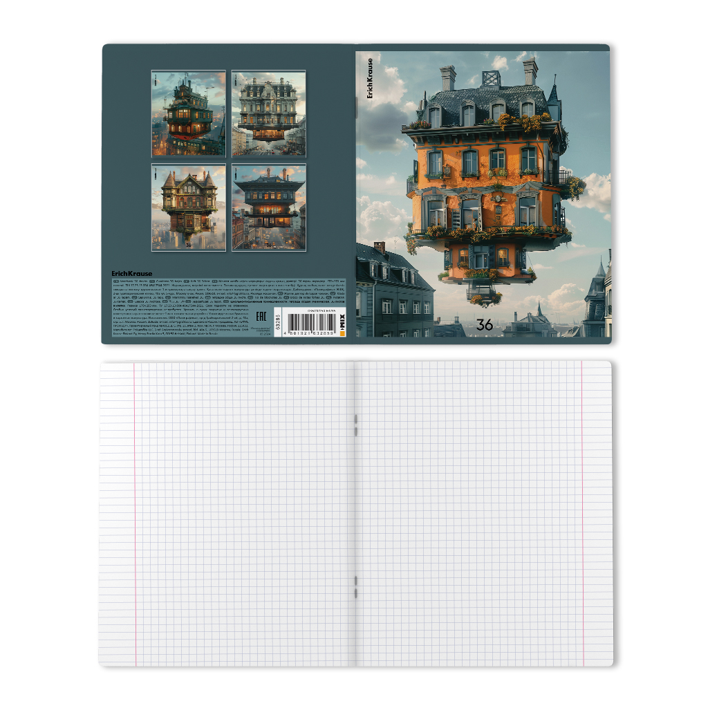 Тетрадь общая ученическая ErichKrause Flying House, 36 листов, клетка_MIX-PACK |
