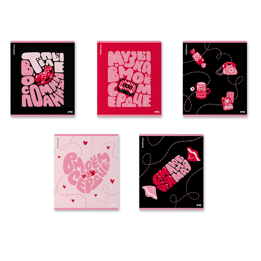 Тетрадь общая ученическая формата А5+ (170х203 мм). Обложка из высококачественного мелованного картона плотностью 190 г/м2. Отделка - двойной лак. В блоке 48 листов в клетку с полями. Бумага офсетная плотностью 60 г/м2. Цвет линовки - синий. Скругленные уголки обложки и блока. Тип скрепления - скоба.Тетради разного дизайна упакованы в термоусадочную пленку по 5 штук. |