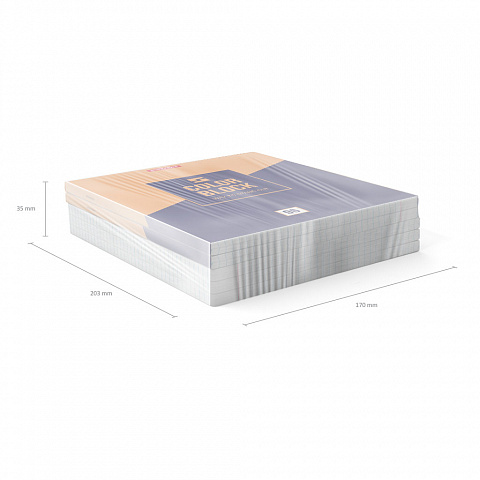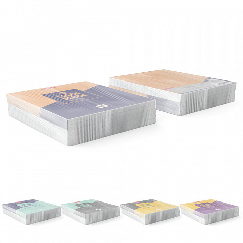 Тетрадь общая формата А5+ (170х203 мм). Обложка из высококачественного мелованного картона плотностью 190 г/м2. В блоке 96 листов в клетку с полями. Бумага офсетная плотностью 55 г/м2. Цвет линовки - синий. Скругленные уголки обложки и блока. Тип скрепления - скоба. Тетради одного дизайна упакованы в термоусадочную пленку по 5 штук. Товар поставляется в нескольких вариантах дизайна без возможности выбора. |
