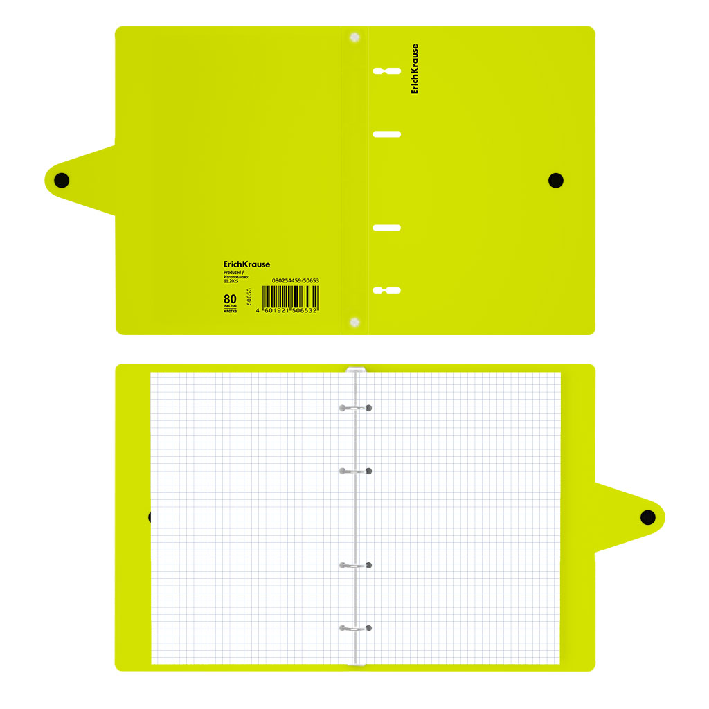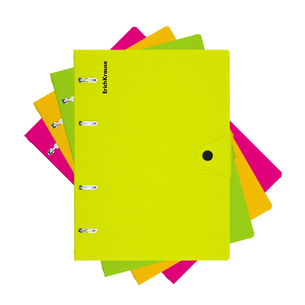 Тетрадь общая с пластиковой обложкой на кольцах ErichKrause Neon, ассорти, А5, 80 листов, клетка, на кнопке |