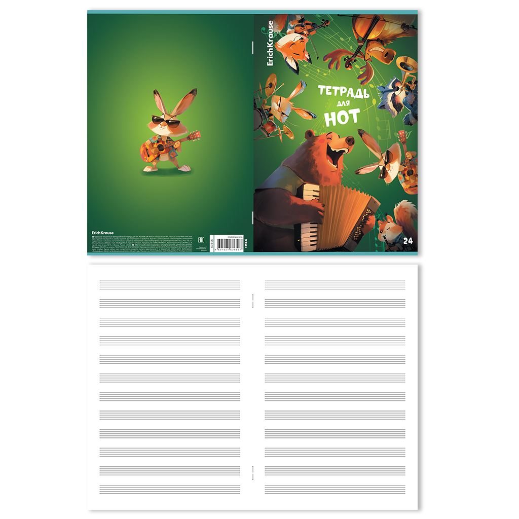 Тетрадь для нот на скобе c картонной обложкой ErichKrause Jolly Orchestra, А4, 24 листа_MIX-PACK |