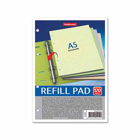 Сменный блок для тетради на кольцах ErichKrause, А5, 120 листов, клетка, 4 цвета |