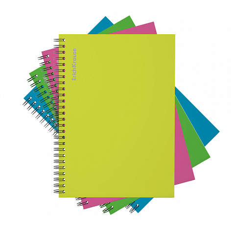 Тетрадь общая ученическая на спирали ErichKrause Neon, А4, 120 листов, клетка, ламинация глянцевая, структурное тиснение "лён" |