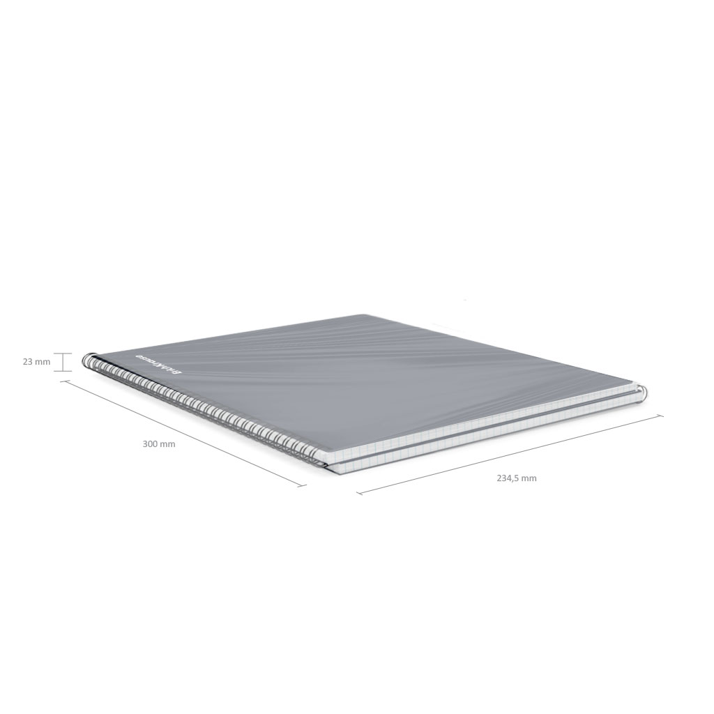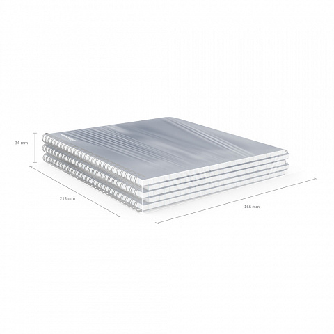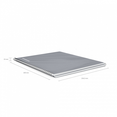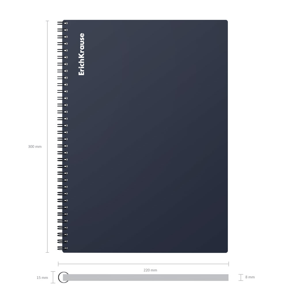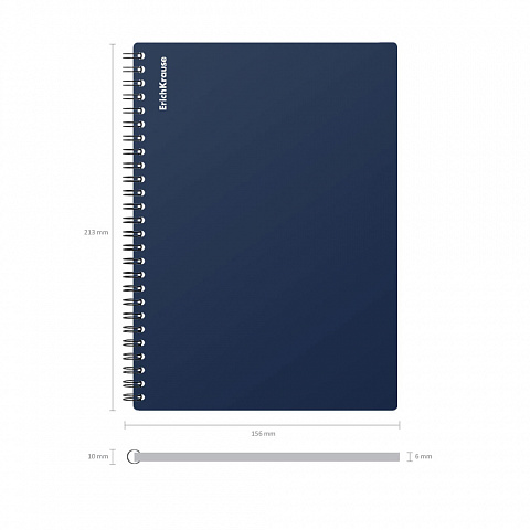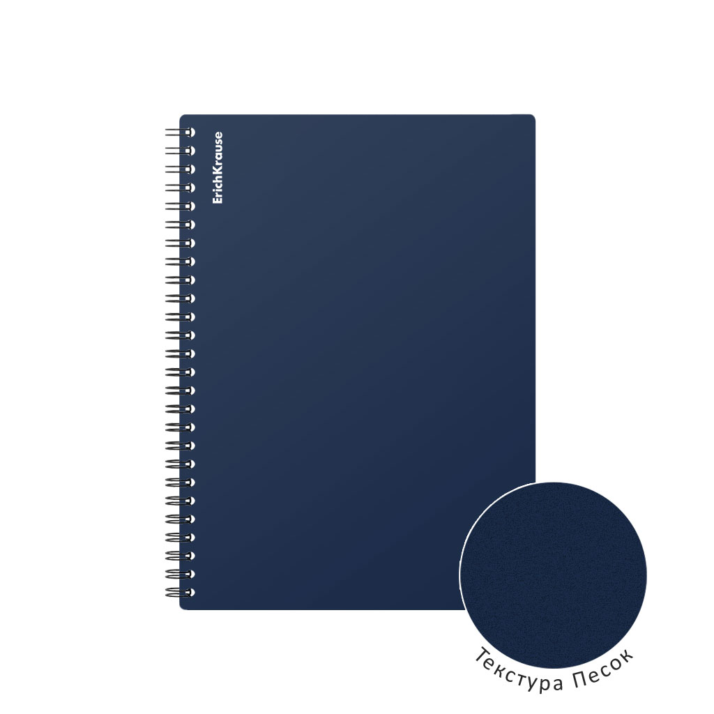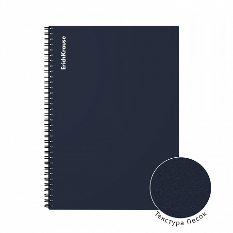 Тетрадь общая формата А4 (210x297 мм). Обложка из высококачественного износостойкого матового пластика с фактурой «песок». В блоке 60 листов в клетку. Бумага офсетная плотностью 60 г/м2. Цвет линовки — синий. Скругленные уголки обложки. Тип скрепления — спираль… |