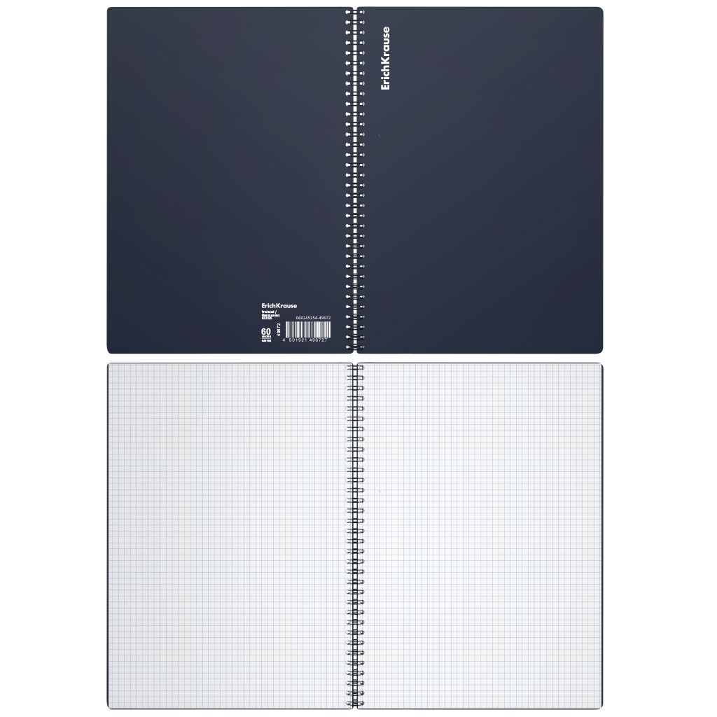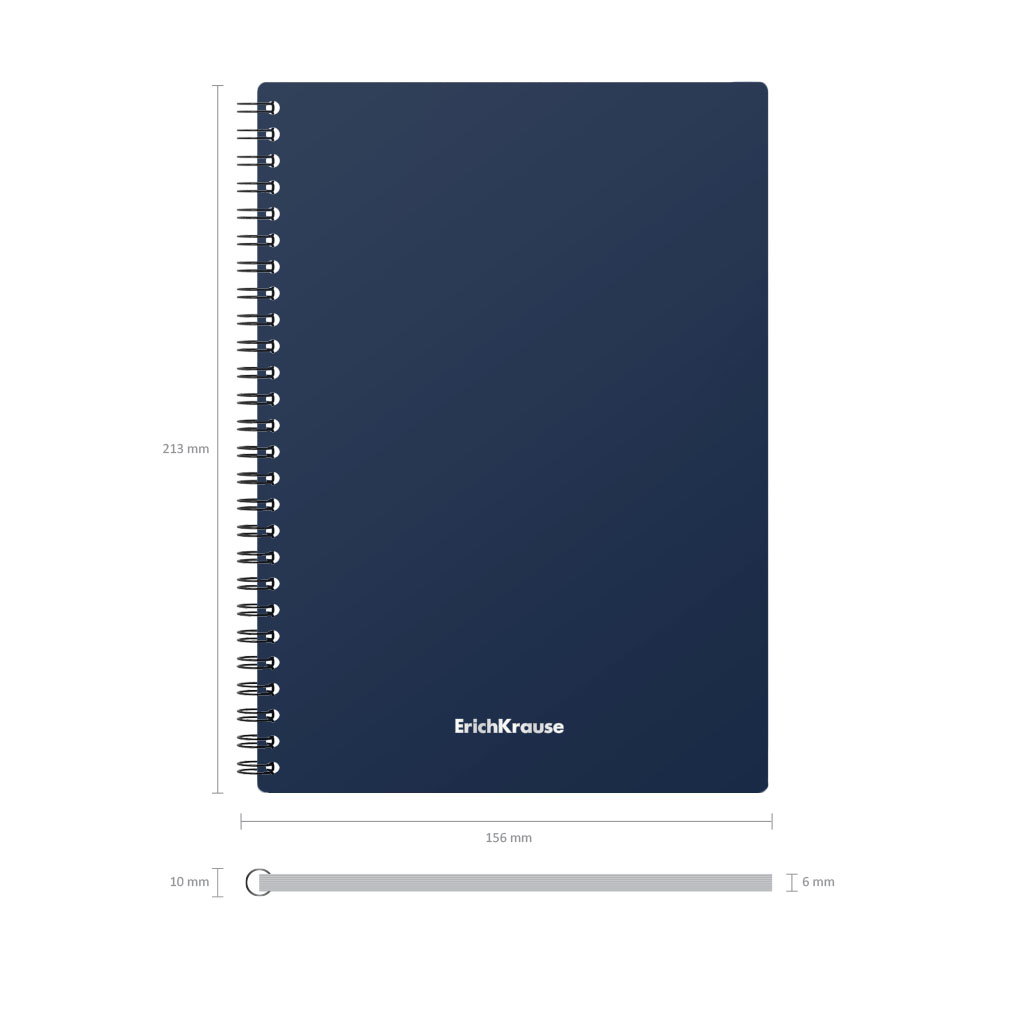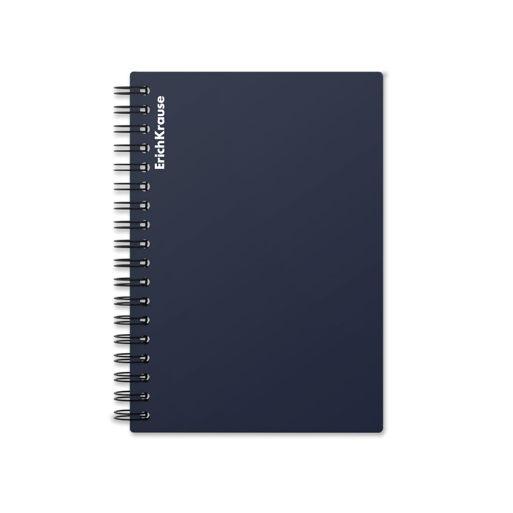Тетрадь общая формата А5 (148x210 мм). Обложка из высококачественного износостойкого матового пластика с фактурой «песок». В блоке 60 листов в клетку. Бумага офсетная плотностью 60 г/м2. Цвет линовки — синий. Скругленные уголки обложки. Тип скрепления — спираль… |