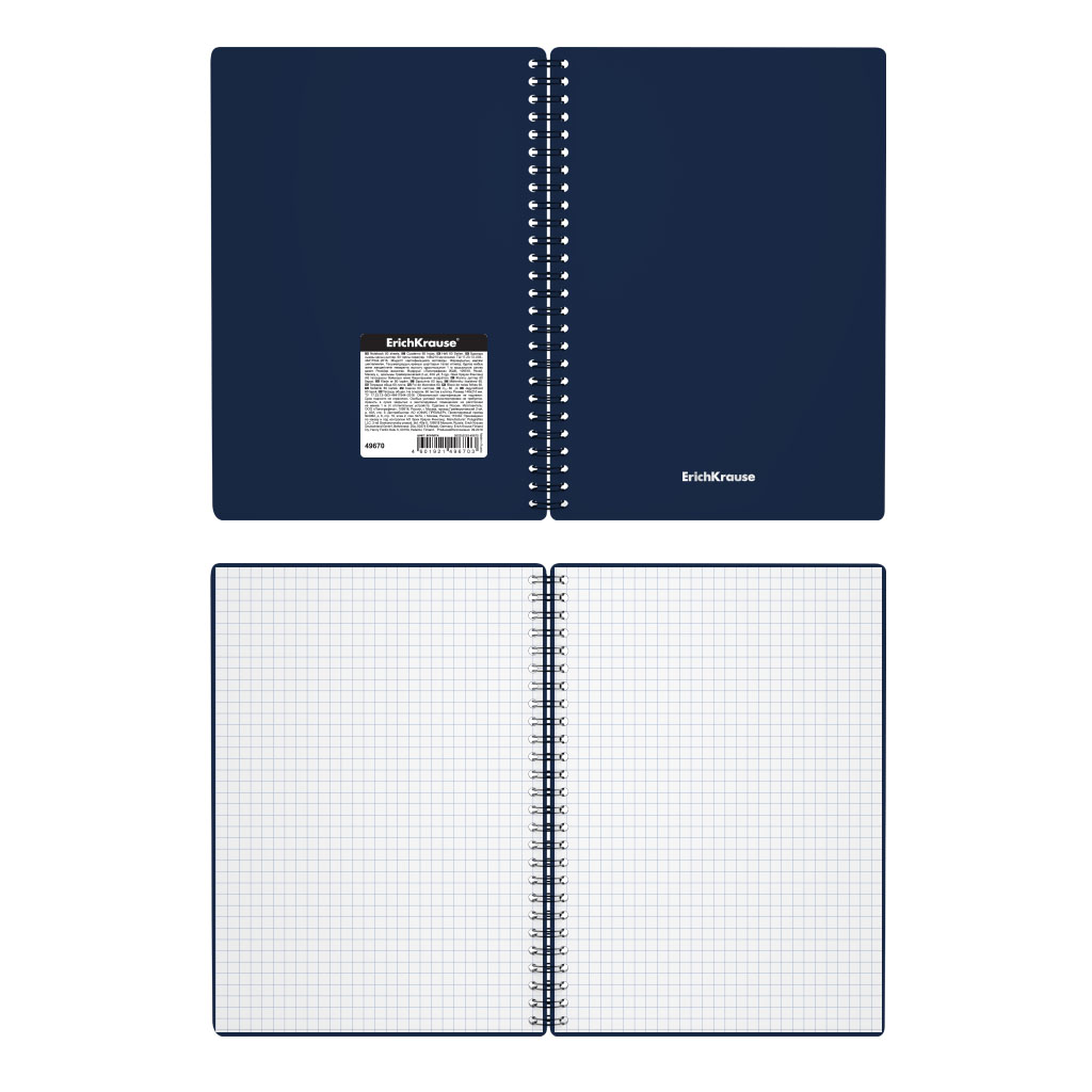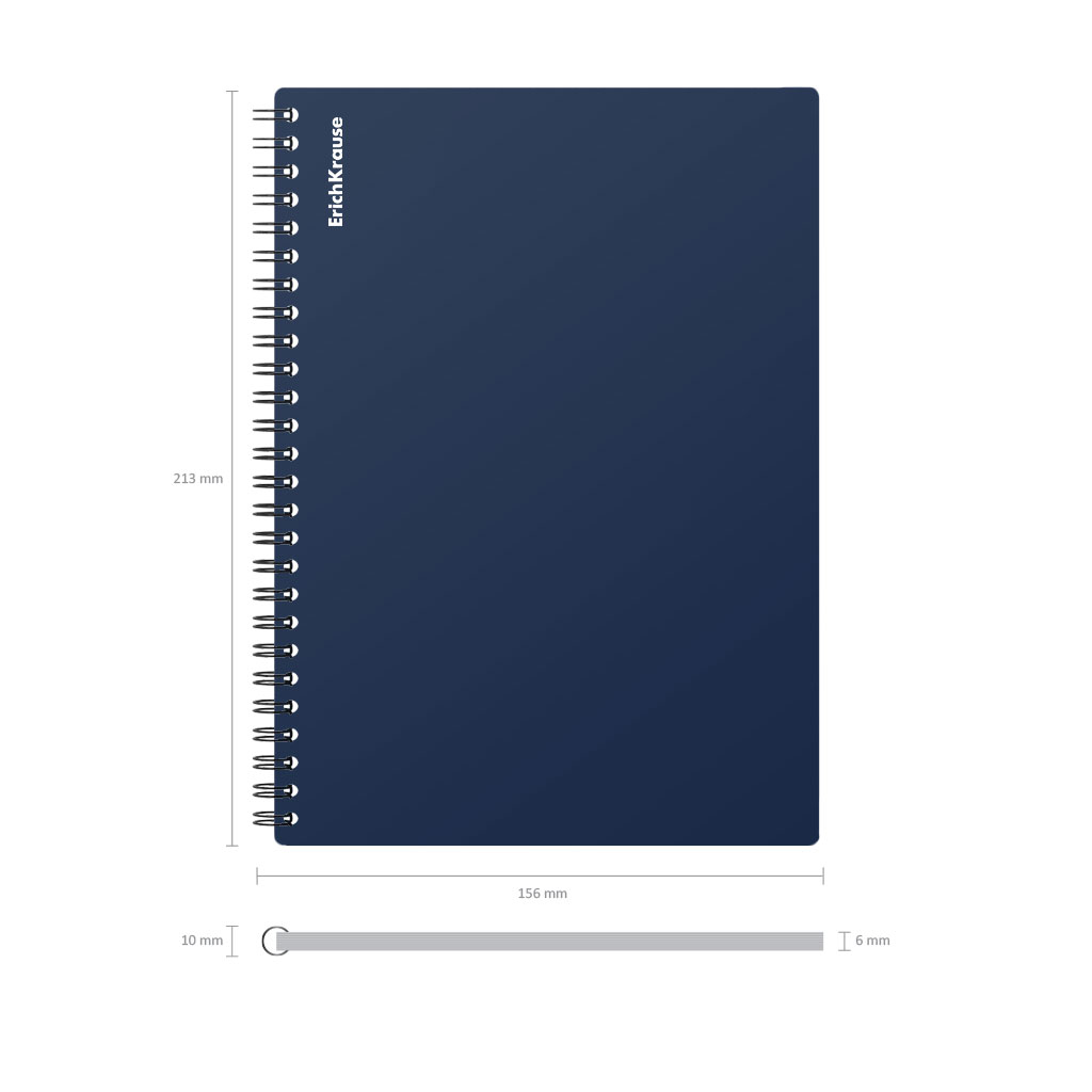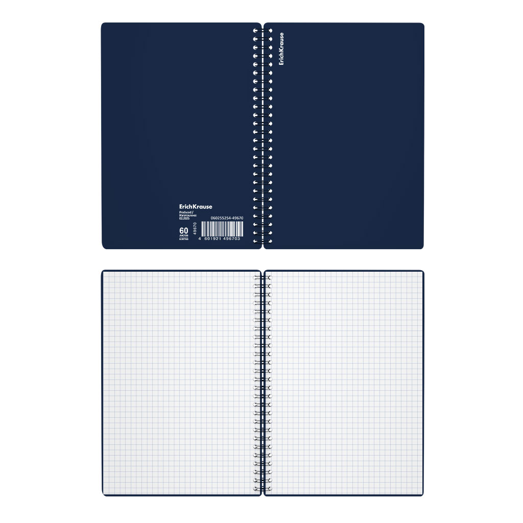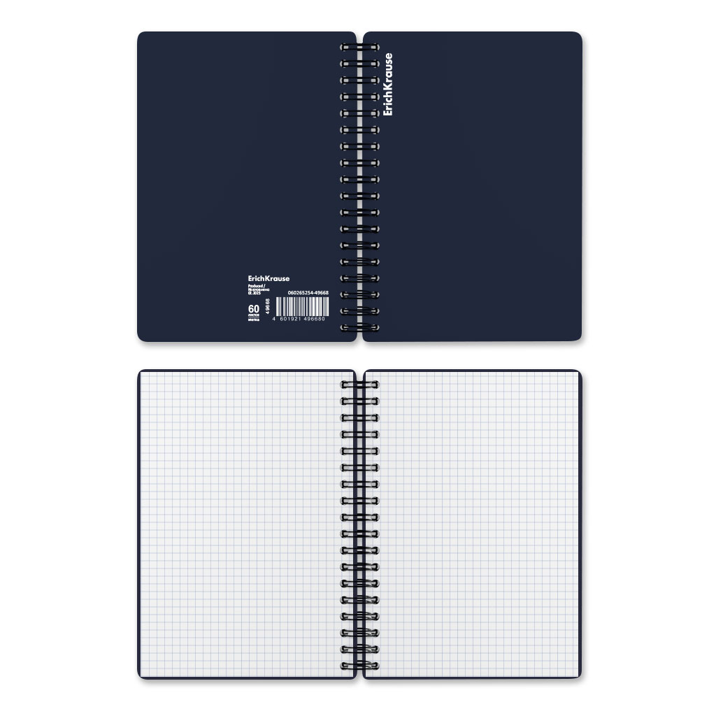 Тетрадь общая формата А5 (148x210 мм). Обложка из высококачественного износостойкого матового пластика с фактурой «песок». В блоке 60 листов в клетку. Бумага офсетная плотностью 60 г/м2. Цвет линовки — синий. Скругленные уголки обложки. Тип скрепления — спираль… |