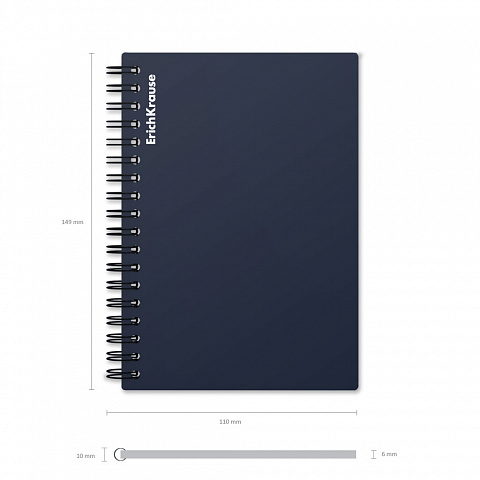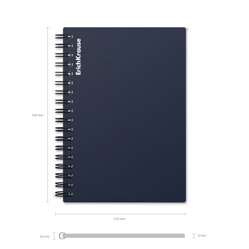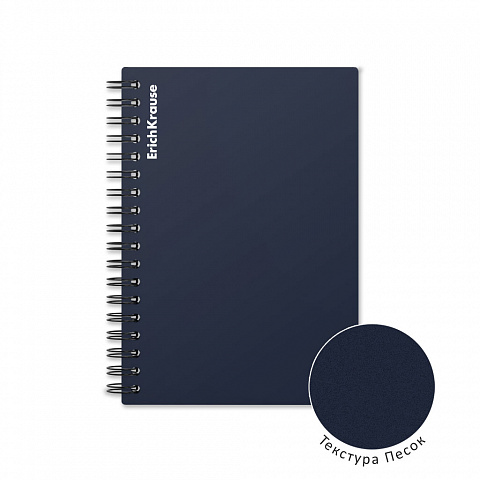 Тетрадь общая формата А6 (102x146 мм). Обложка из высококачественного износостойкого матового пластика с фактурой «песок». В блоке 60 листов в клетку. Бумага офсетная плотностью 60 г/м2. Цвет линовки — синий. Скругленные уголки обложки. Тип скрепления — спираль… |