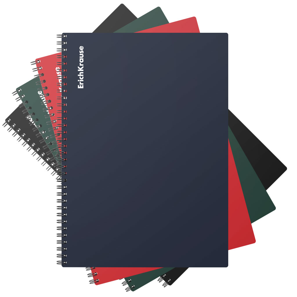 Тетрадь общая формата А4 (210x297 мм). Обложка из высококачественного износостойкого матового пластика с фактурой «песок». В блоке 60 листов в клетку. Бумага офсетная плотностью 60 г/м2. Цвет линовки — синий. Скругленные уголки обложки. Тип скрепления — спираль. Тетради одного цвета упакованы в термоусадочную пленку по 3 штуки. Товар поставляется в нескольких вариантах цвета без возможности выбора. |