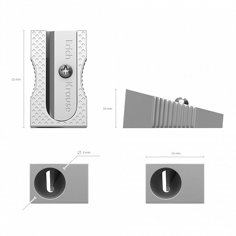 Металлическая точилка с эргономичной зоной захвата. Отверстие для заточки стандартных чернографитных и цветных карандашей диаметром 8 мм. Никелированное лезвие из углеродистой стали. |