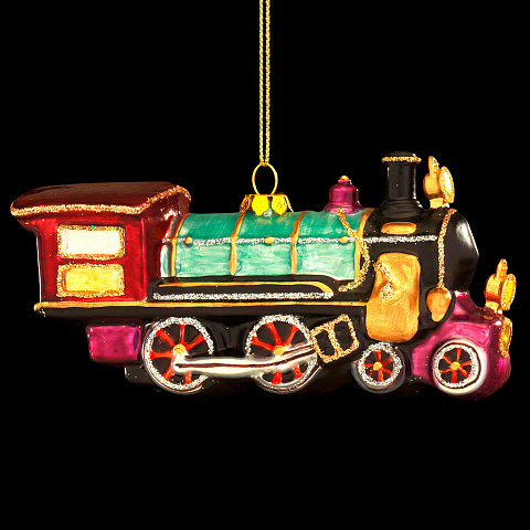Стеклянный паровоз выглядит абсолютно натуралистично. Оригинальное и очень ценное украшение для елки. Яркие цвета изделия подчеркивают сияющие блестки. Упаковка - слой плотной бумаги; предназначена только для безопасной транспортировки и хранения. |