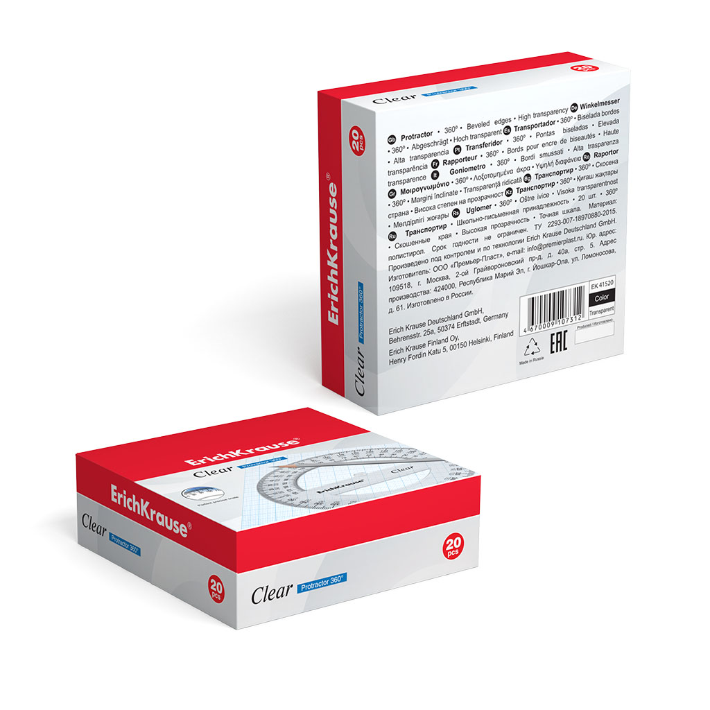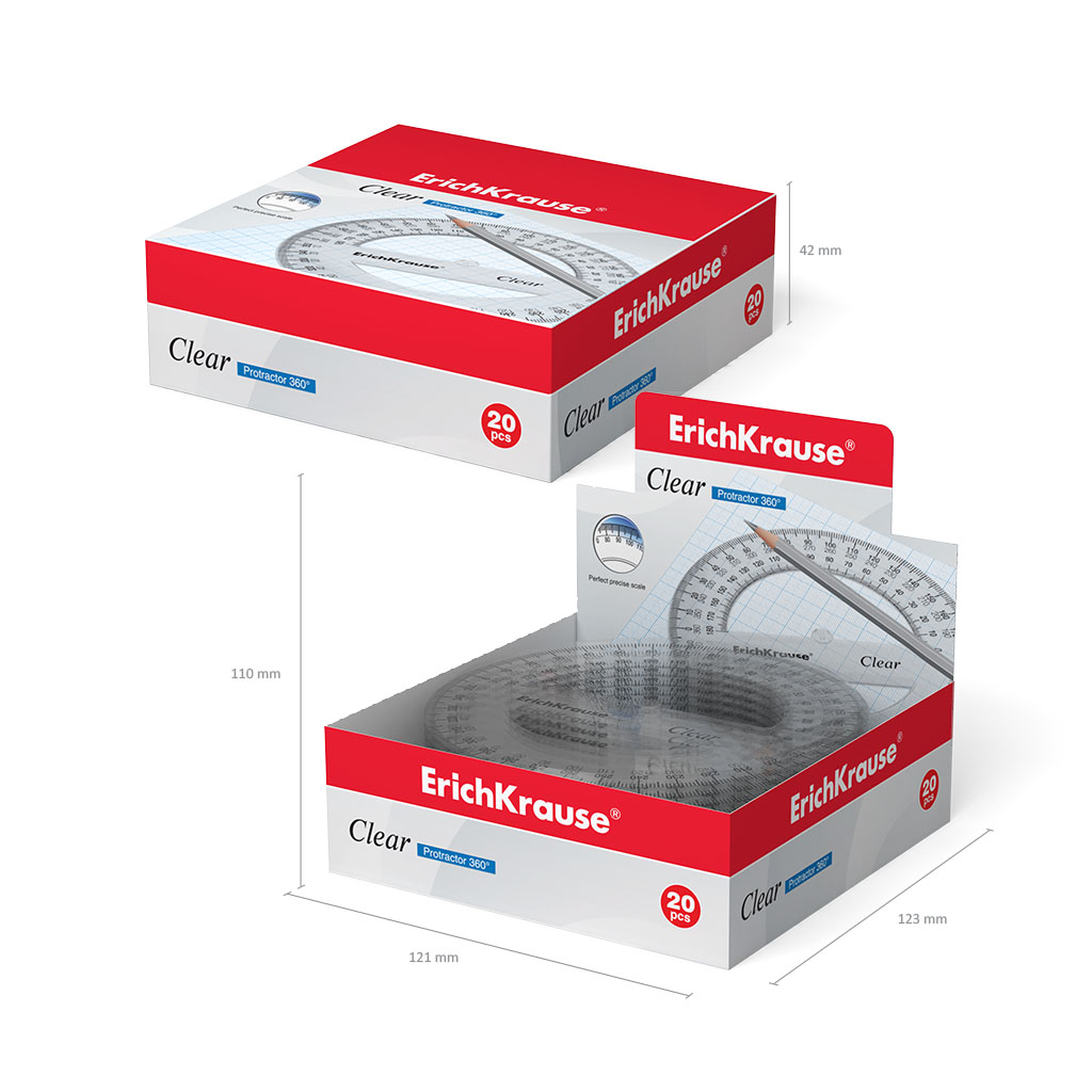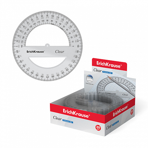 Транспортир пластиковый ErichKrause® Clear, 360 градусов, 12 см, прозрачный (в коробке-дисплее по 20 шт.) |