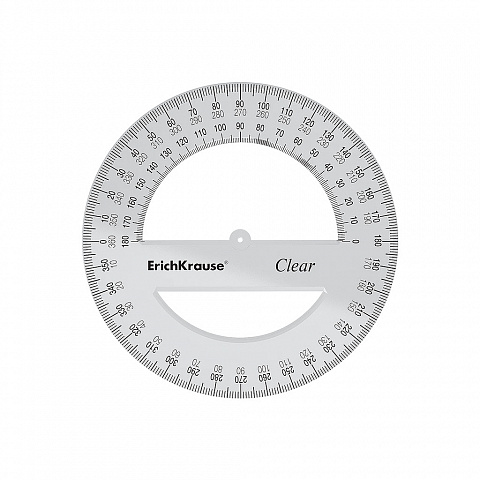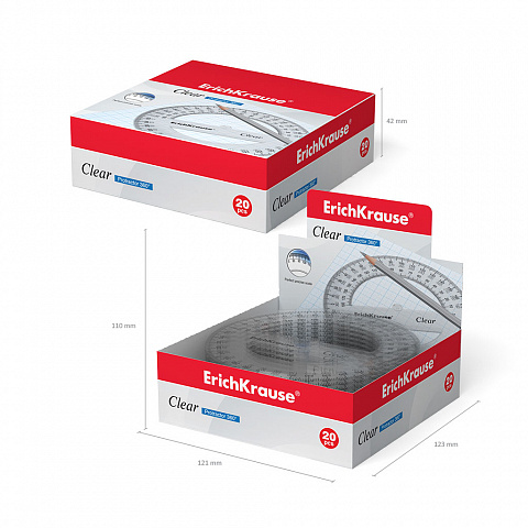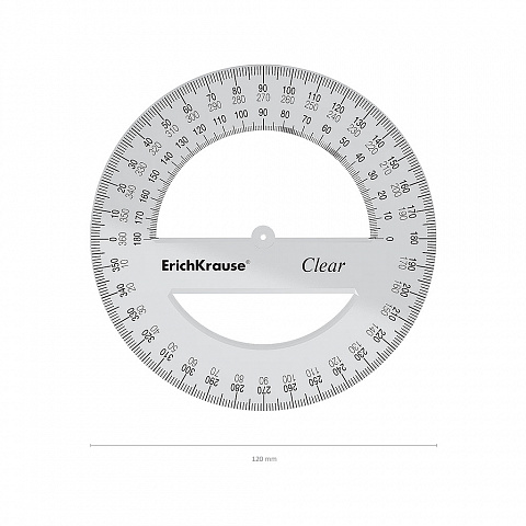 Транспортир пластиковый ErichKrause® Clear, 360 градусов, 12 см, прозрачный (в коробке-дисплее по 20 шт.)