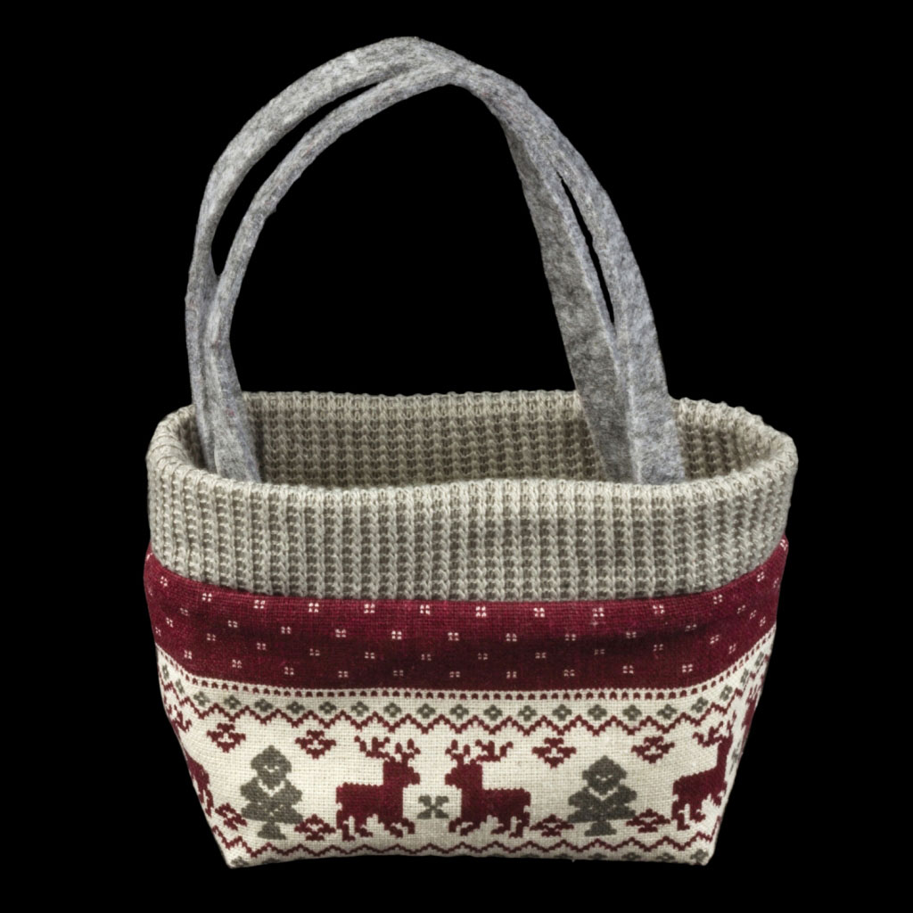 Сумочка из плотной ткани с шерстяными ручками является оригинальной упаковкой для небольших подарков. Минималистичный узор из оленей и елочек в классической рождественской расцветке сделает подарок особенным. Групповая упаковка предназначена только для безопасной транспортировки и хранения. |
