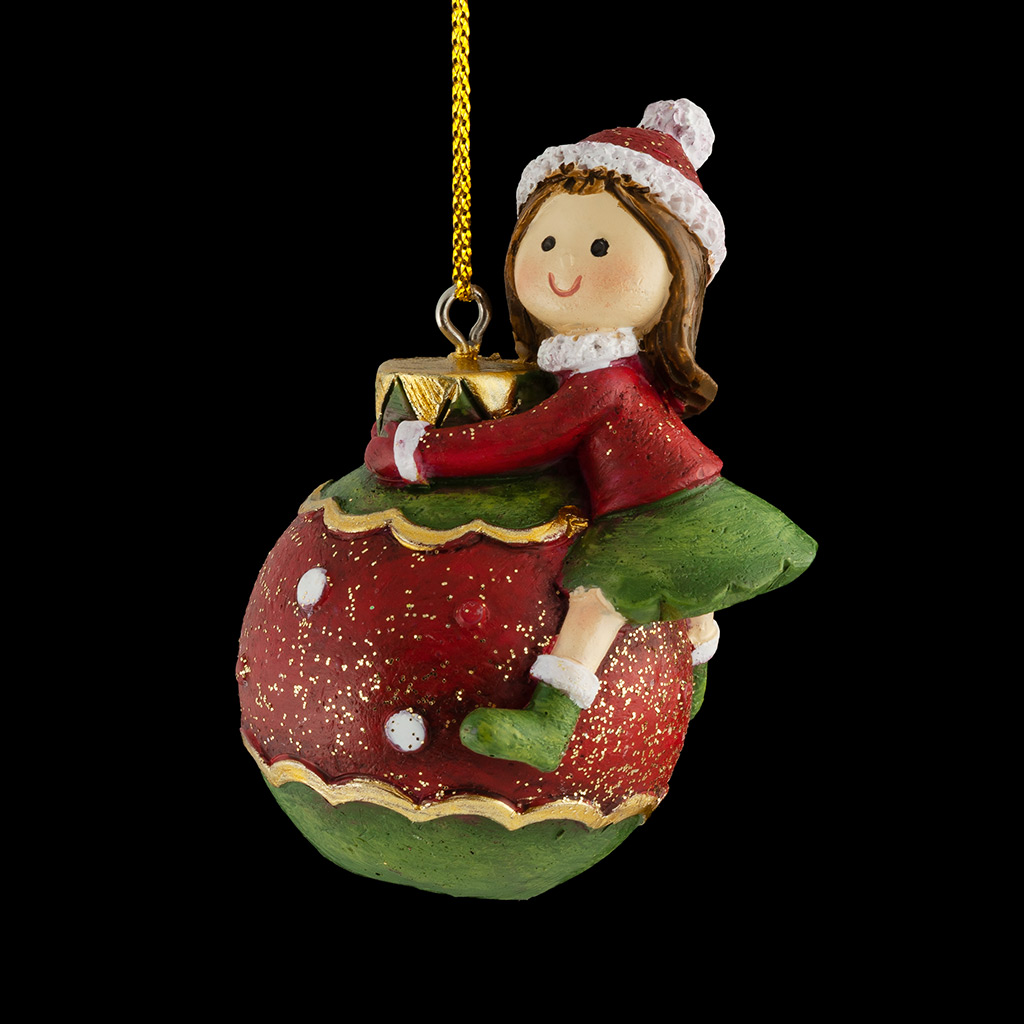 Мультяшная девочка карабкается на большой елочный шар. Украшение отличается тонко прорисованными деталями. Классическое новогоднее сочетание красного и зеленого цвета создает праздничное настроение. Групповая упаковка предназначена только для безопасной транспортировки… |