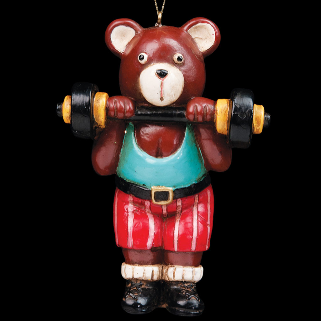 Медвежонок со штангой выполнен в ретро-стиле. Оригинальное украшение для елки. Групповая упаковка предназначена только для безопасной транспортировки и хранения изделий. |